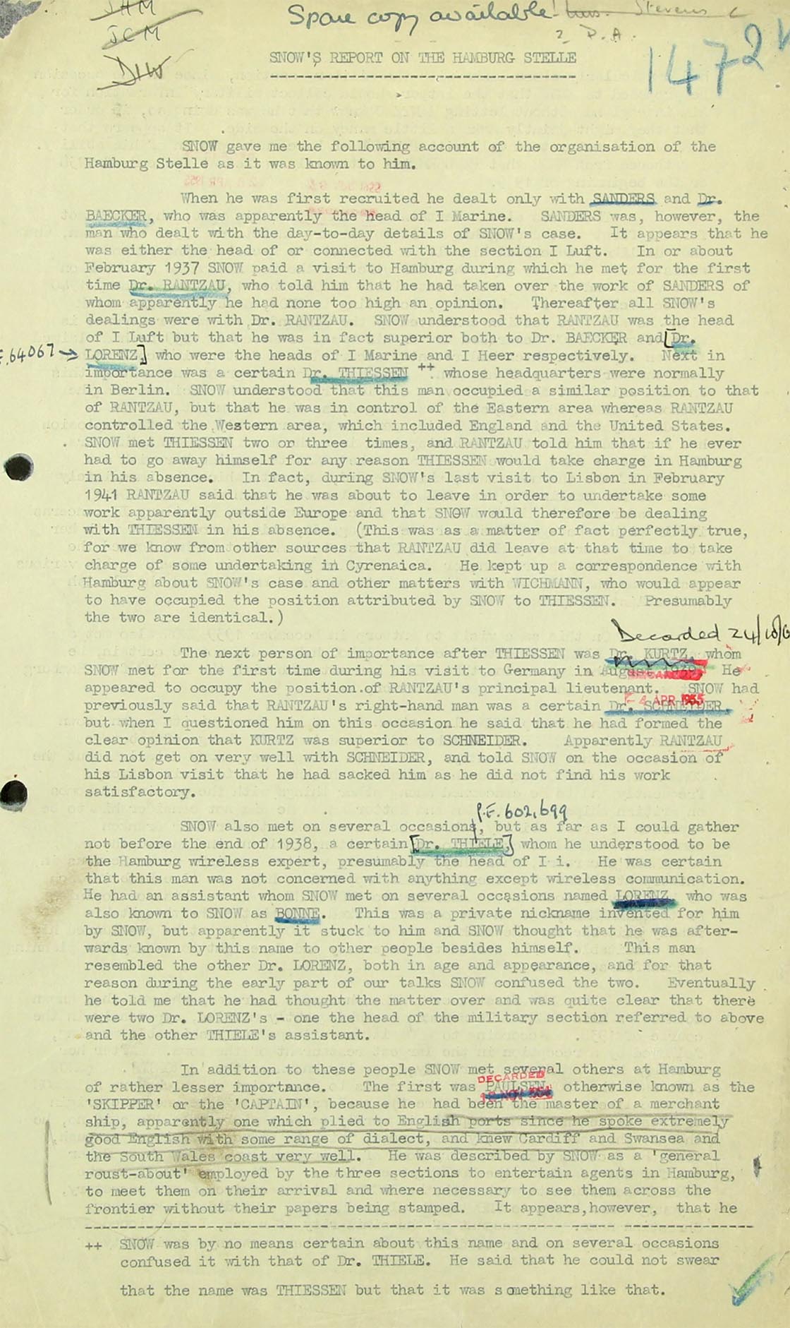 AOB: what I, after all, should add is - that I was very content with Nigel West's book on Snow (Arthur Owens). In particular the pages in his introduction, where many cover-names had been explained what their really name had been. It carried my reference [19]