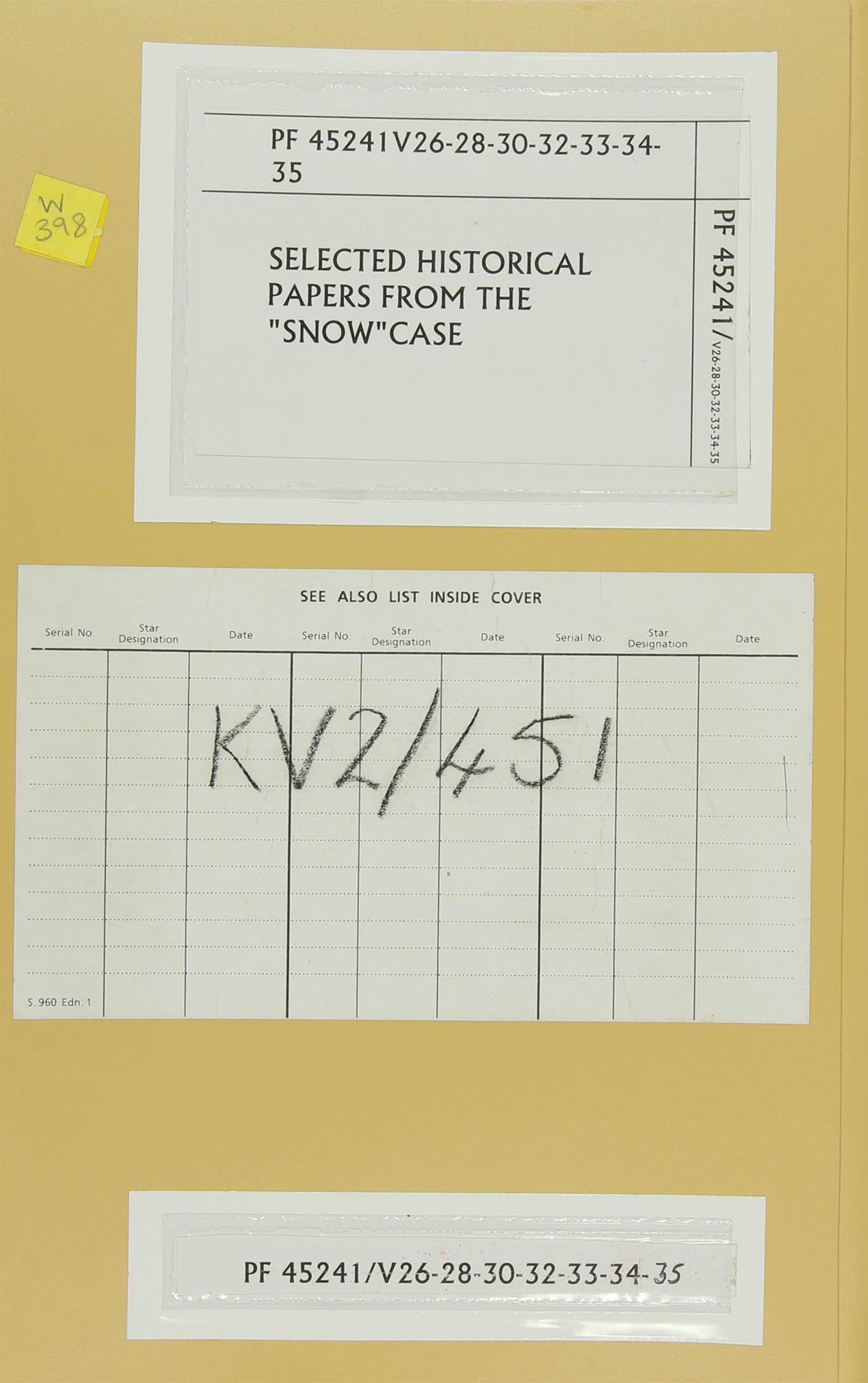 Quoting now from [19] Nigel West's and Madoc Roberts book: Snow ...