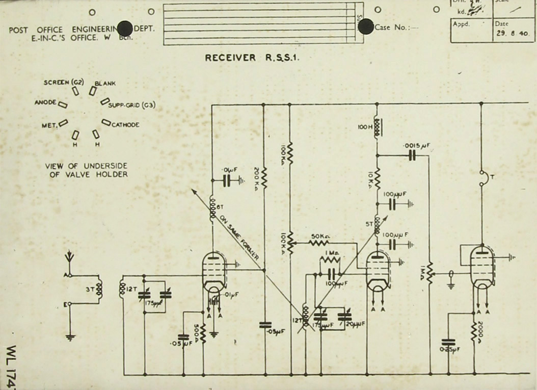 Receiver schematic, with British designation R.S.S.1 date 29.8.40