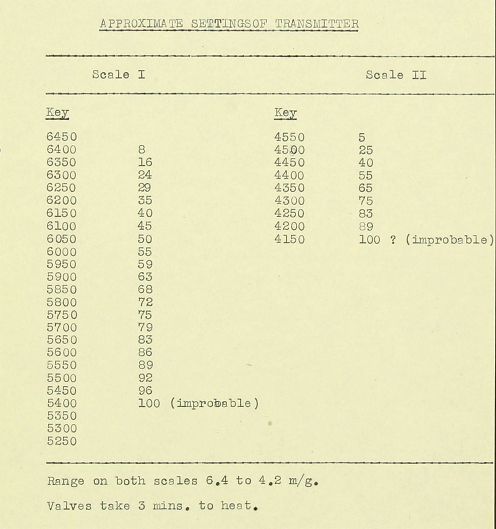 This table needs to be used to tune at the operational frequency (wave-length) in respect to the scale dial shown, at page KV 2/453-2, page_26