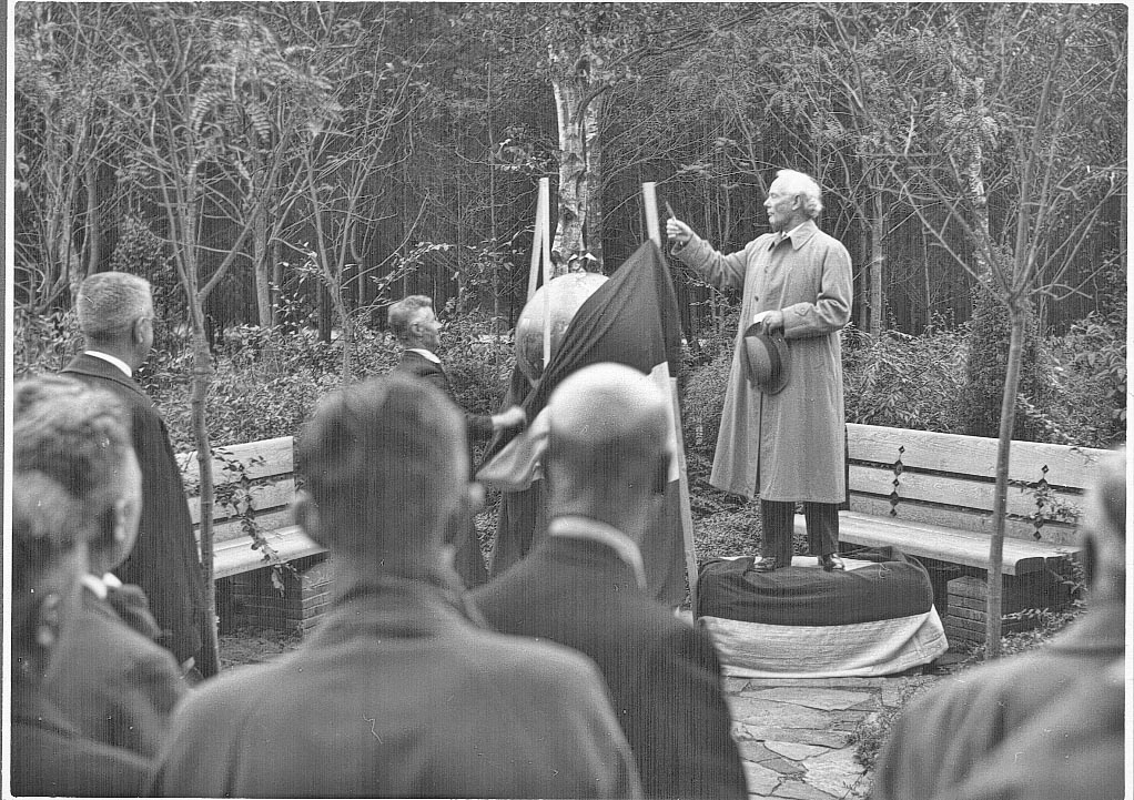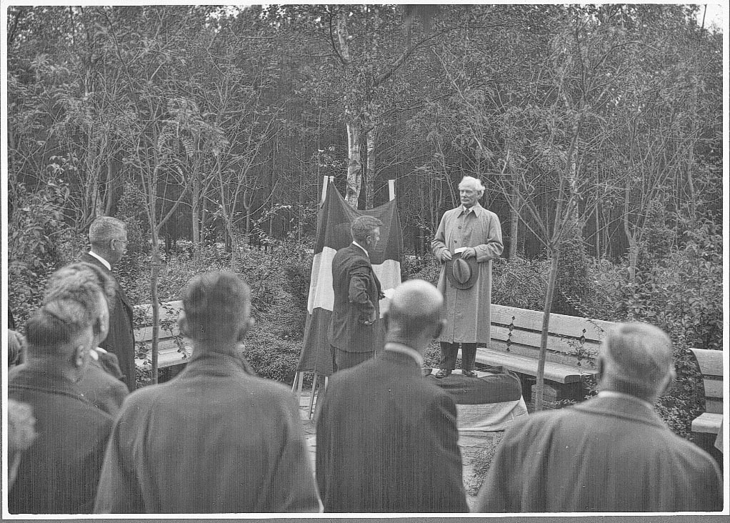 Het door den tuinarchitect B.C. van den Steenhoven verzorgde plantsoentje, waarin monument en gedenkkei een plaats vonden