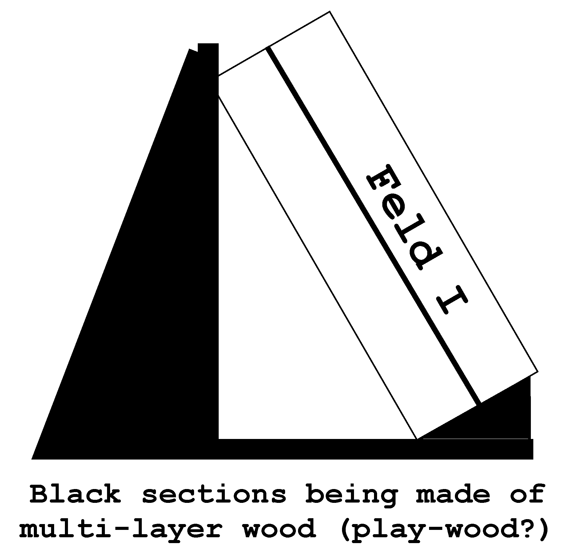 The small wooden strip in front is to stabilise (later) the Feld I frame; holding Feld I in a tilted position.