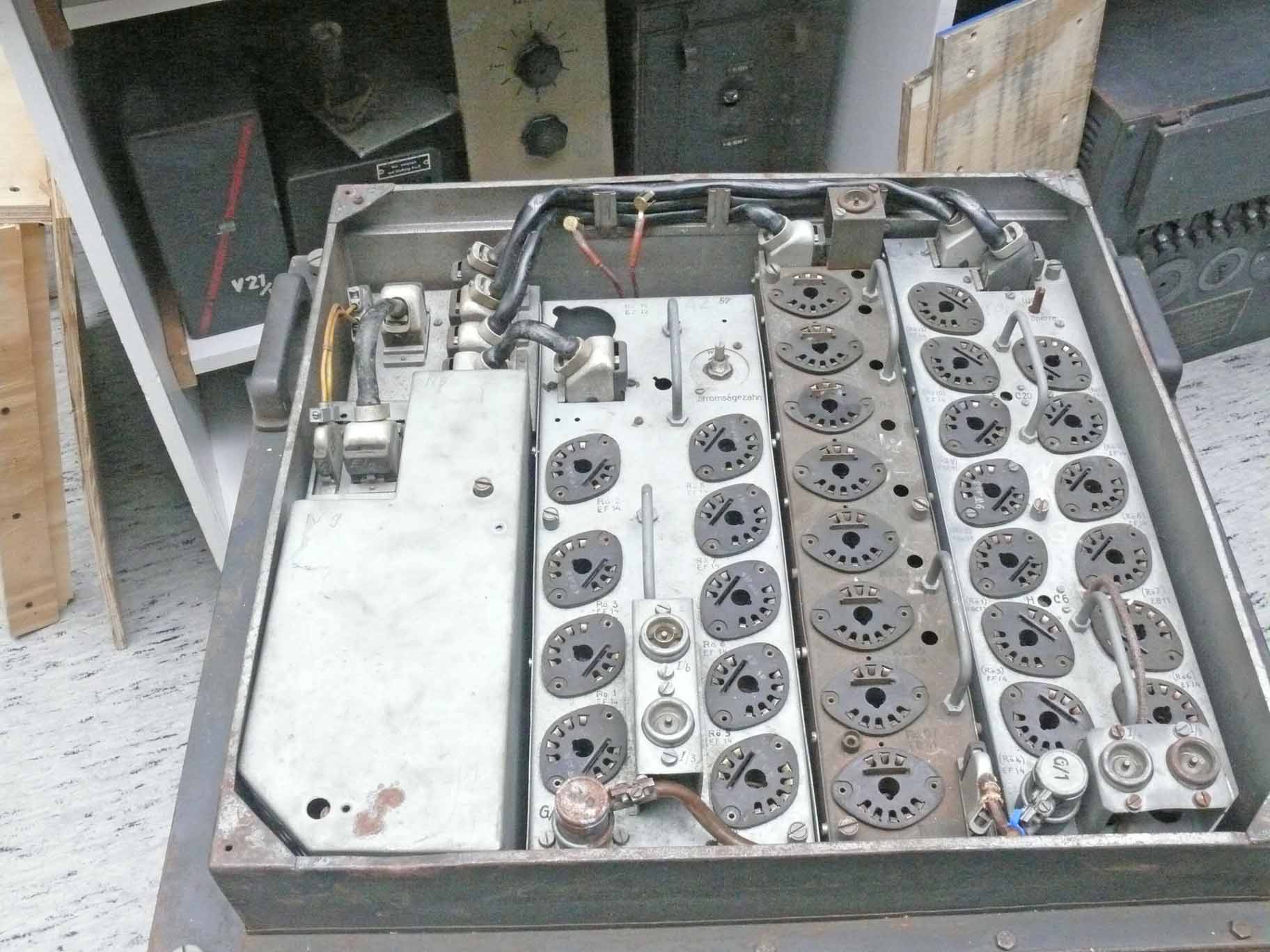 Viewing this module, I would not wonder when German soldiers might have called it: Röhrengrab. An incredible number of valves were involved, of which numbers I counted 17 x EF 14s. A high slope valve, a difficult item to obtain nowadays. But we will see. In this case, these may even of low or non emission, as we do not intend to make the system operational again; but, nice it should, at least, look like.