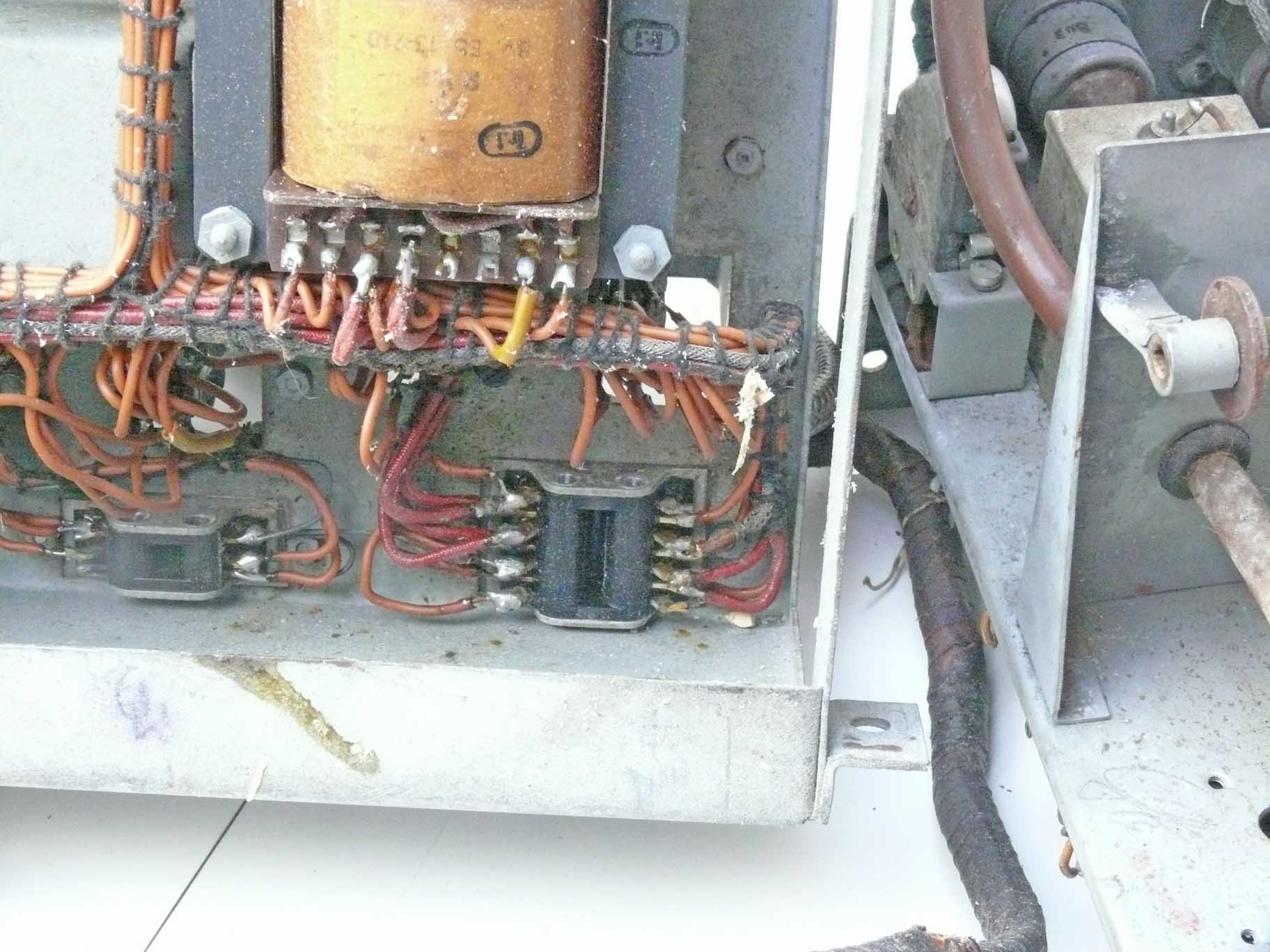 The transformer on top (right-hand side), being supplied from the 80 V 500 Hz system, which strange voltage originated from the genuine British H2S concept, albeit, they operated, when I remember well, 1800 Hz instead. Allowing even smaller transformers (less core metal).