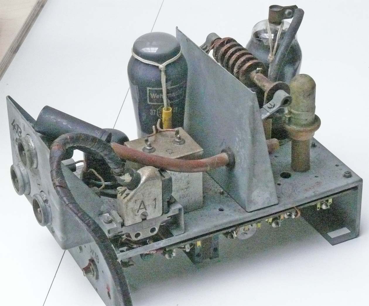 On the left hand side we notice the Zündstufe (part of the transmitter Feld II) and on the right-hand side the removed power supply module to Feld I
