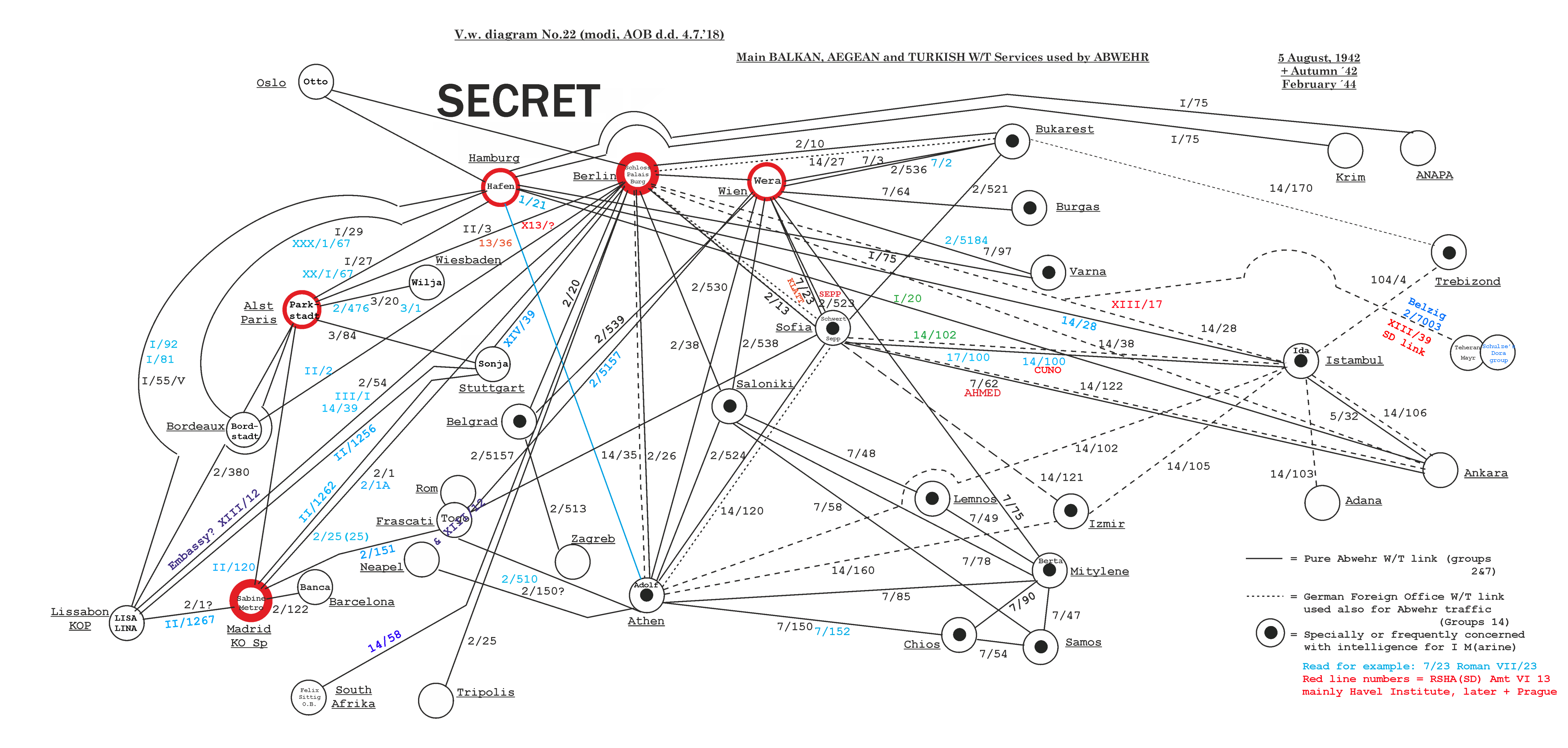 The main Abwehr related centres of communication were: Berlin, Hamburg and Vienna (Wien)