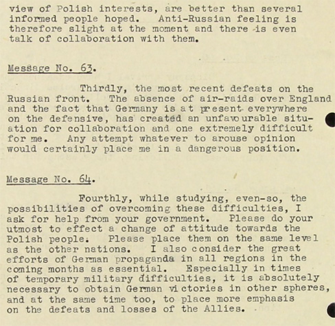 "You are now opposed by an infinitely superior force in the west and nothing can stop the Anglo-Saxons from reaching the borders of Germany. I appreciate, however, that my work is still of the greatest value to you in so far as it enables you to anticipate accurately Allied intentions, and thereby to effect a strategic withdrawal with the minimum loss whilst inflicting the maximum casualties (thus also to their fighting opponents) → (page 74)