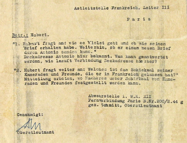 Abwehrstelle XII, Wiesbaden, Fernverbindung Paris.
