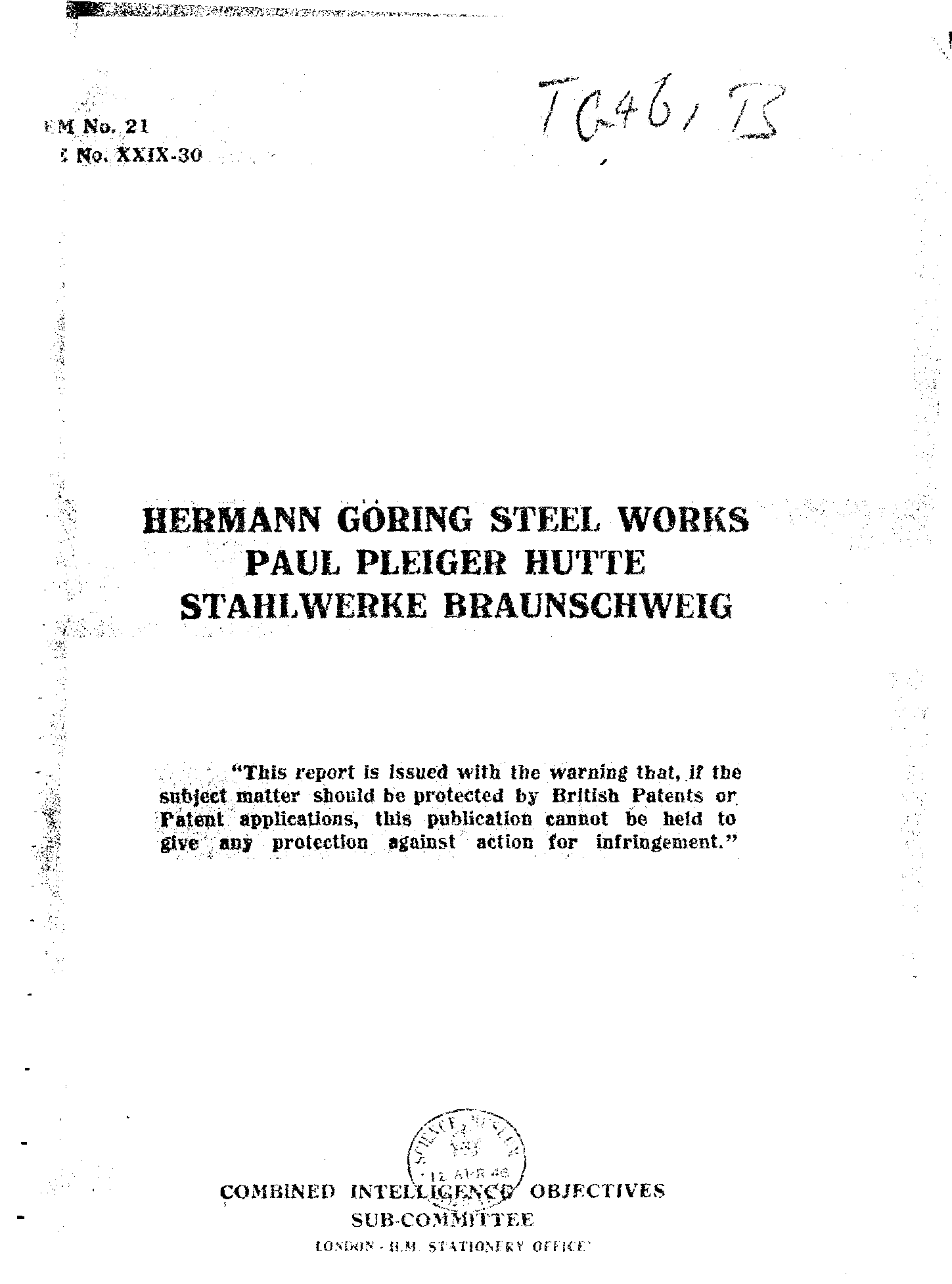 The extensive properties of the Hermann Goring works consisted of mines, blast furnaces, steel plants, and factories. This report covers investigations of the iron ore mines, blast furnaces, steel melting units, rolling mills, foundry, forging plants, and shell machining shops located in the vicinity of Watenstedt-Salzgitter.