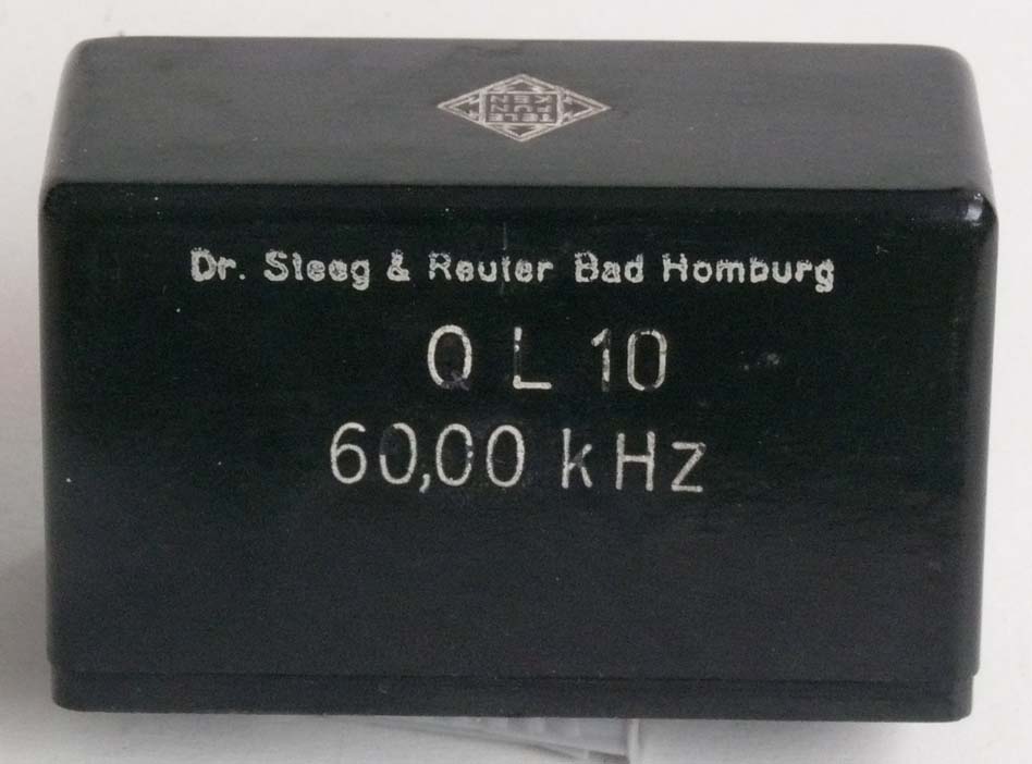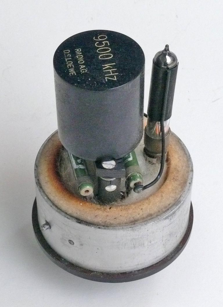 Inside the thermostat is mounted a 9500 kHz quartz crystal made by Radio Loewe A.G. D.S. Loewe