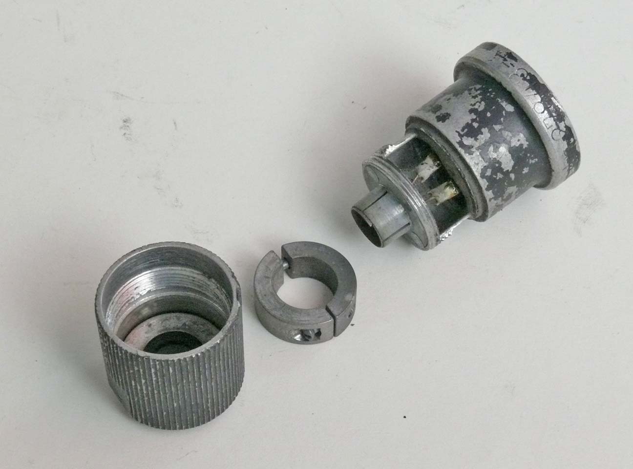 Cover plate being removed. The black ring is made of rubber, which is , after at least sixty six years, still flexible