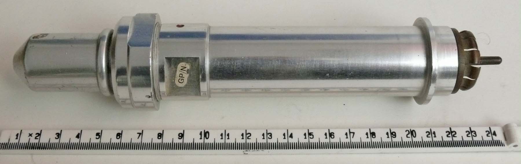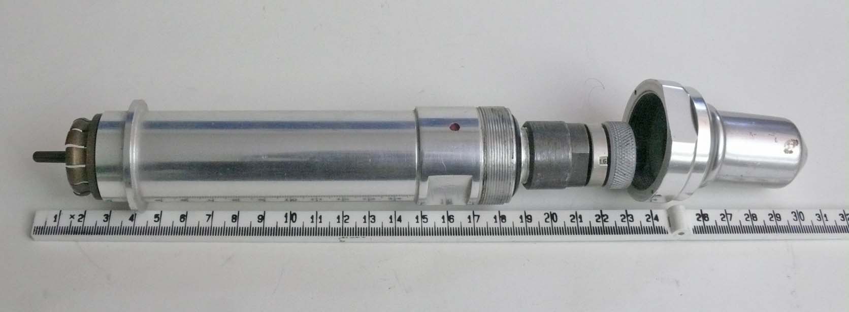 The Ni tubular connection is connected onto the photocell surface (electrode). The second electrode is visible down the Bakelite tube.