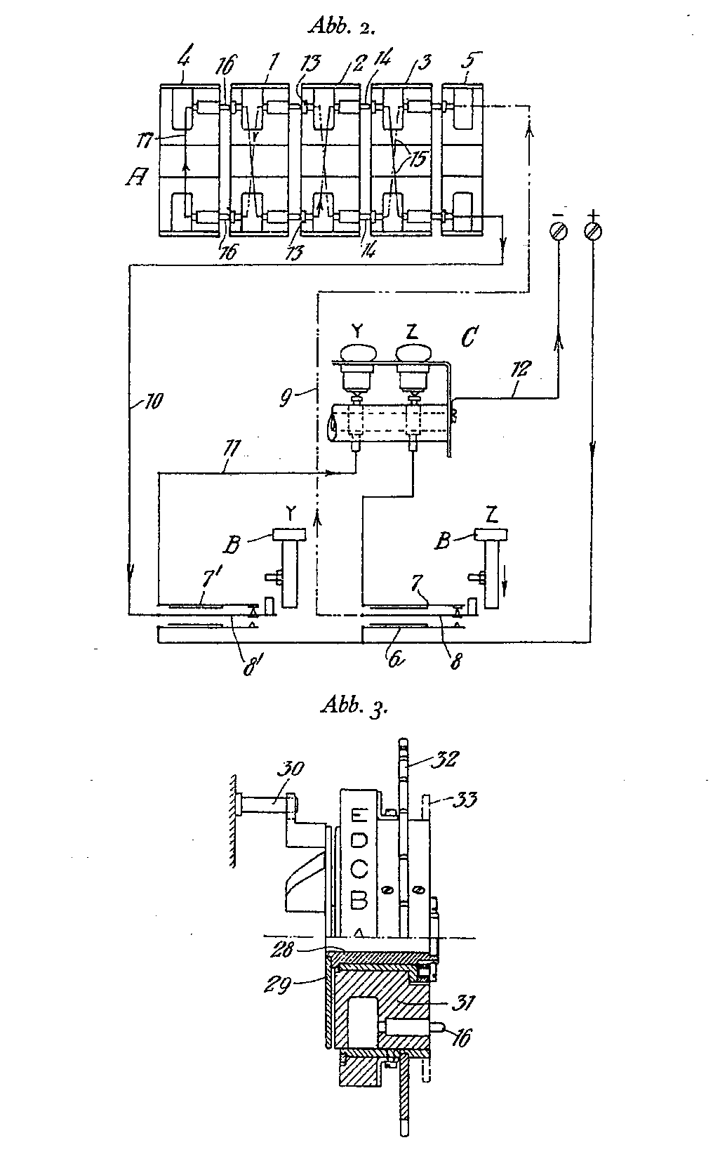 Principle drawing of the electrical circuitry, to DE536556. Interesting is, that the secret type writing apparatus employed a rotor system which did not possess a reflector, though, it should be fully compatible to the well-known Enigma machines of later years. Consider also Dr. Arthur Scherbius' article in ETZ of 1923