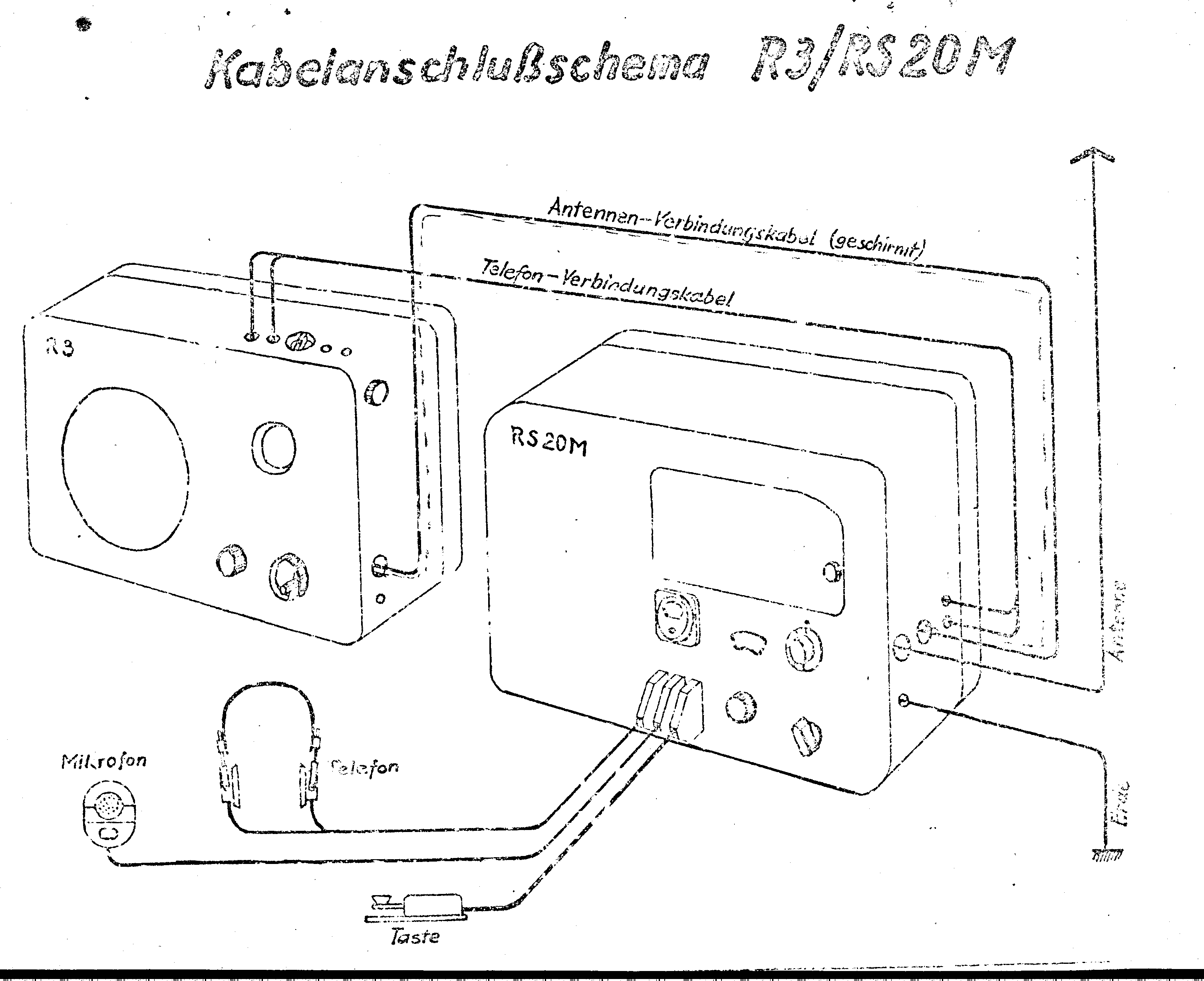 Down we get an idea as to how the R3 receiver on the left being interconnected with the RS 20M transmitter on the right-hand side.