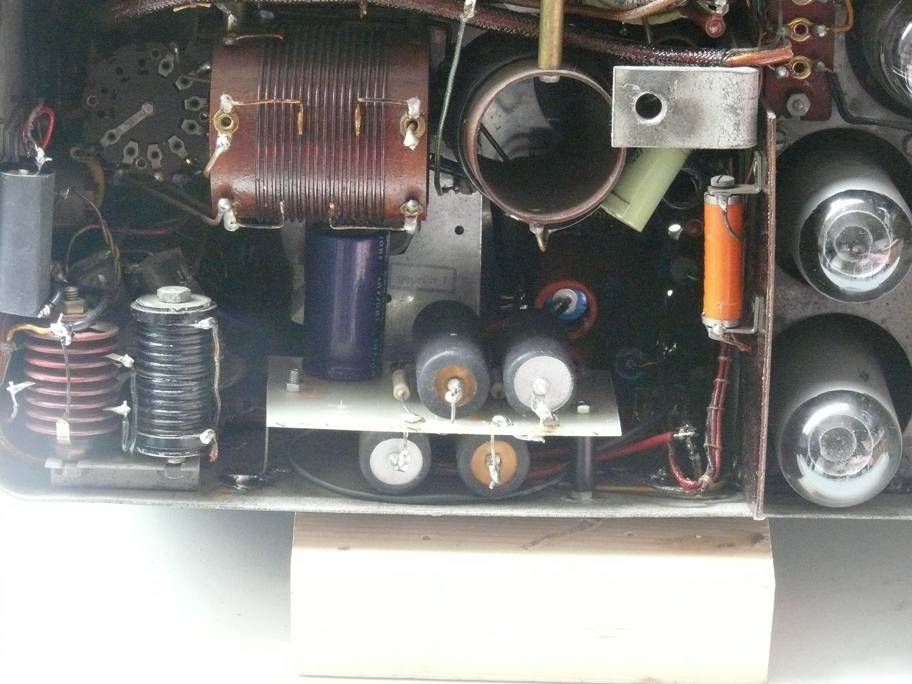 When I opened it in 1979, it proved that the HT block capacitors for smoothing of the 460 V HT had already been removed and some substitute capacitors had been 'amateur-like' built-in.