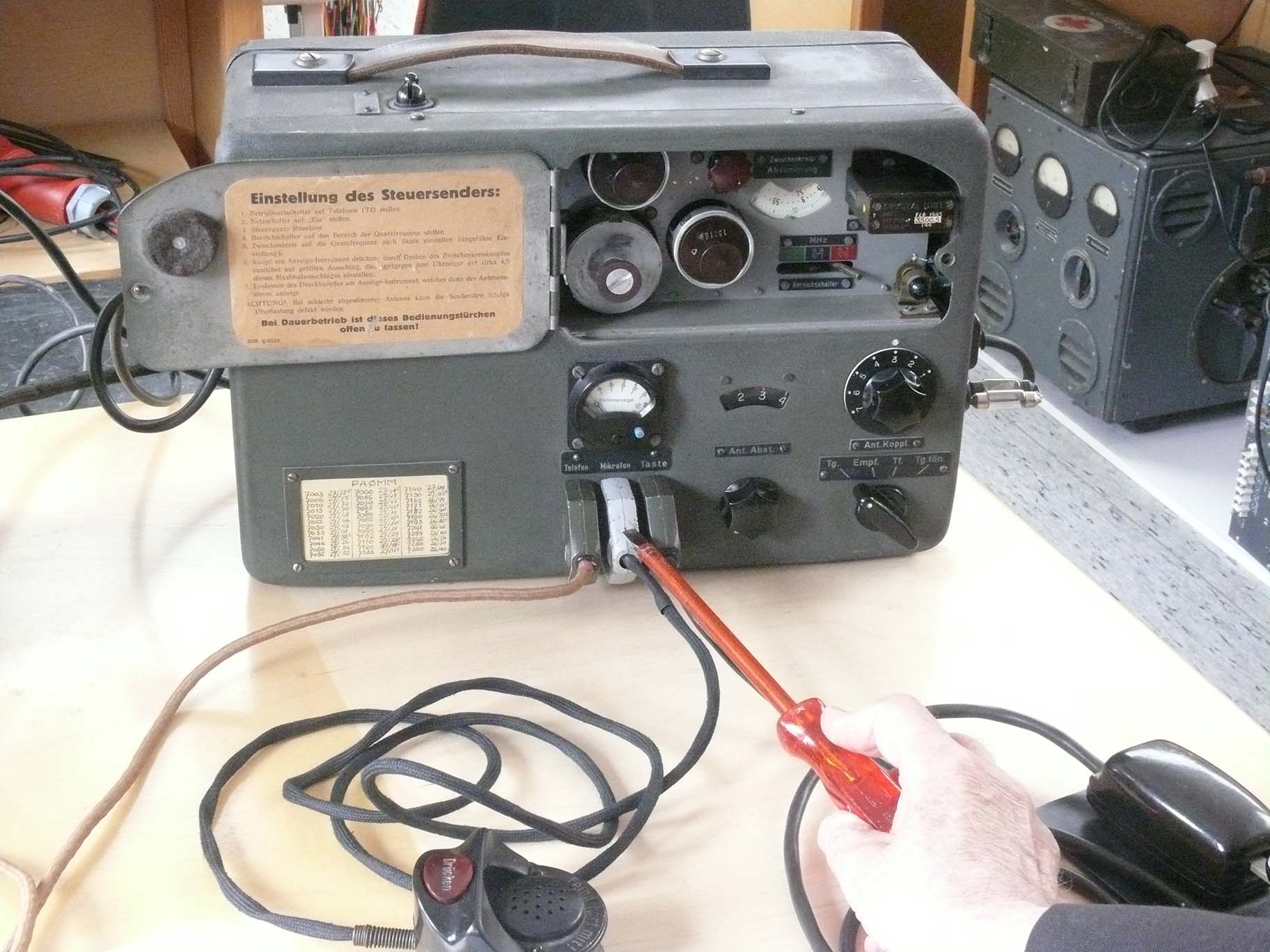 In the centre the grey connector (coincidentally of grey colour) The Radione station operated a regular Army (Heeres) microphone; the red bottom should be kept pressed when speaking
