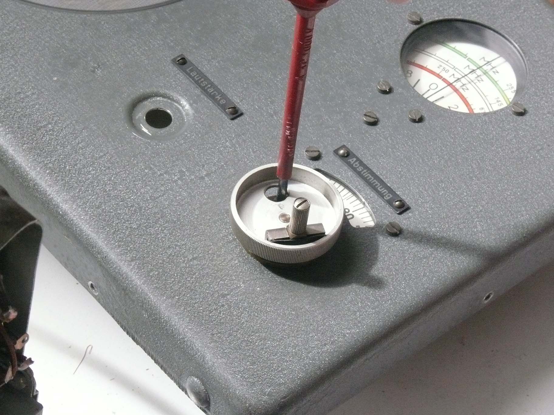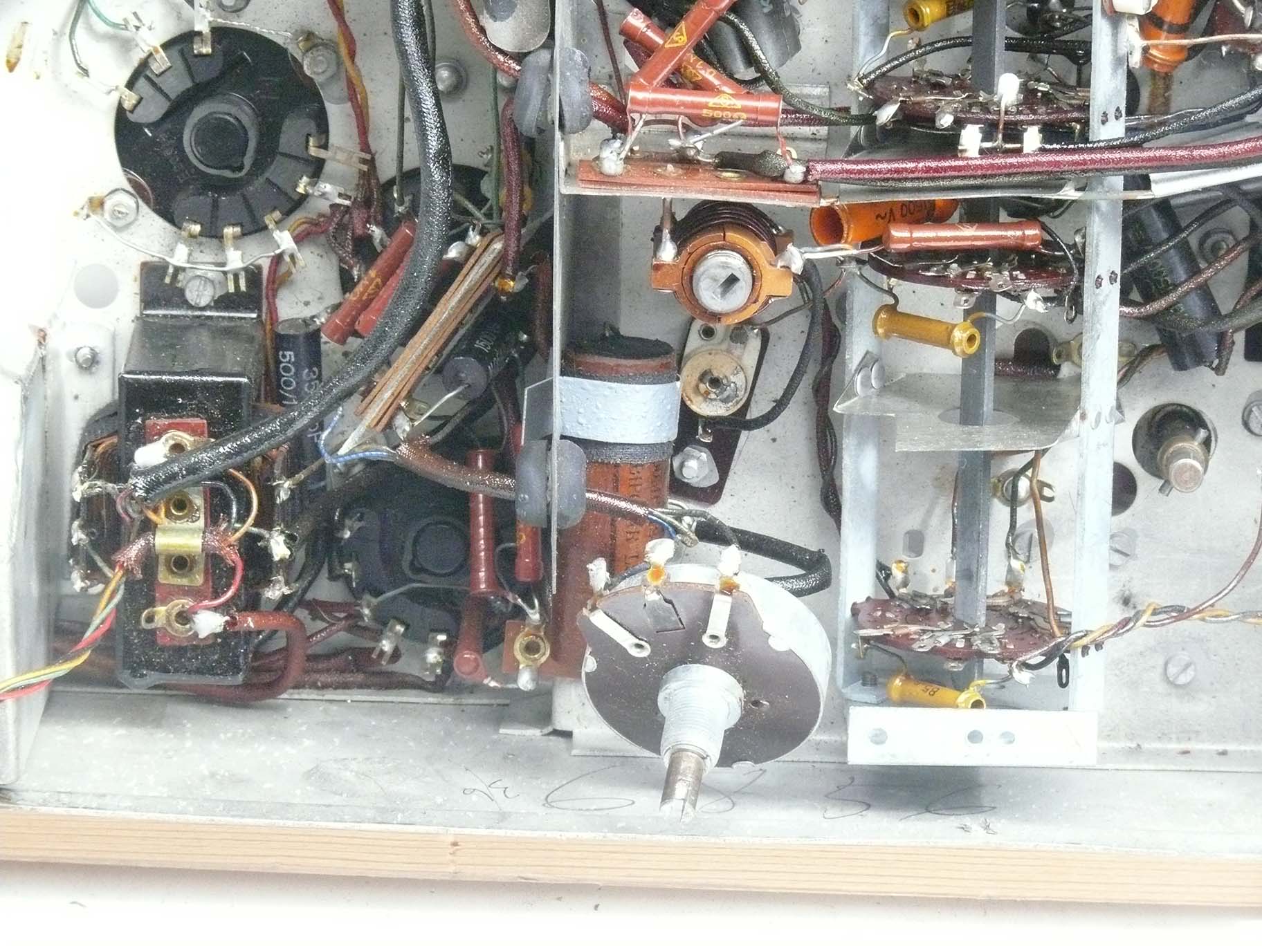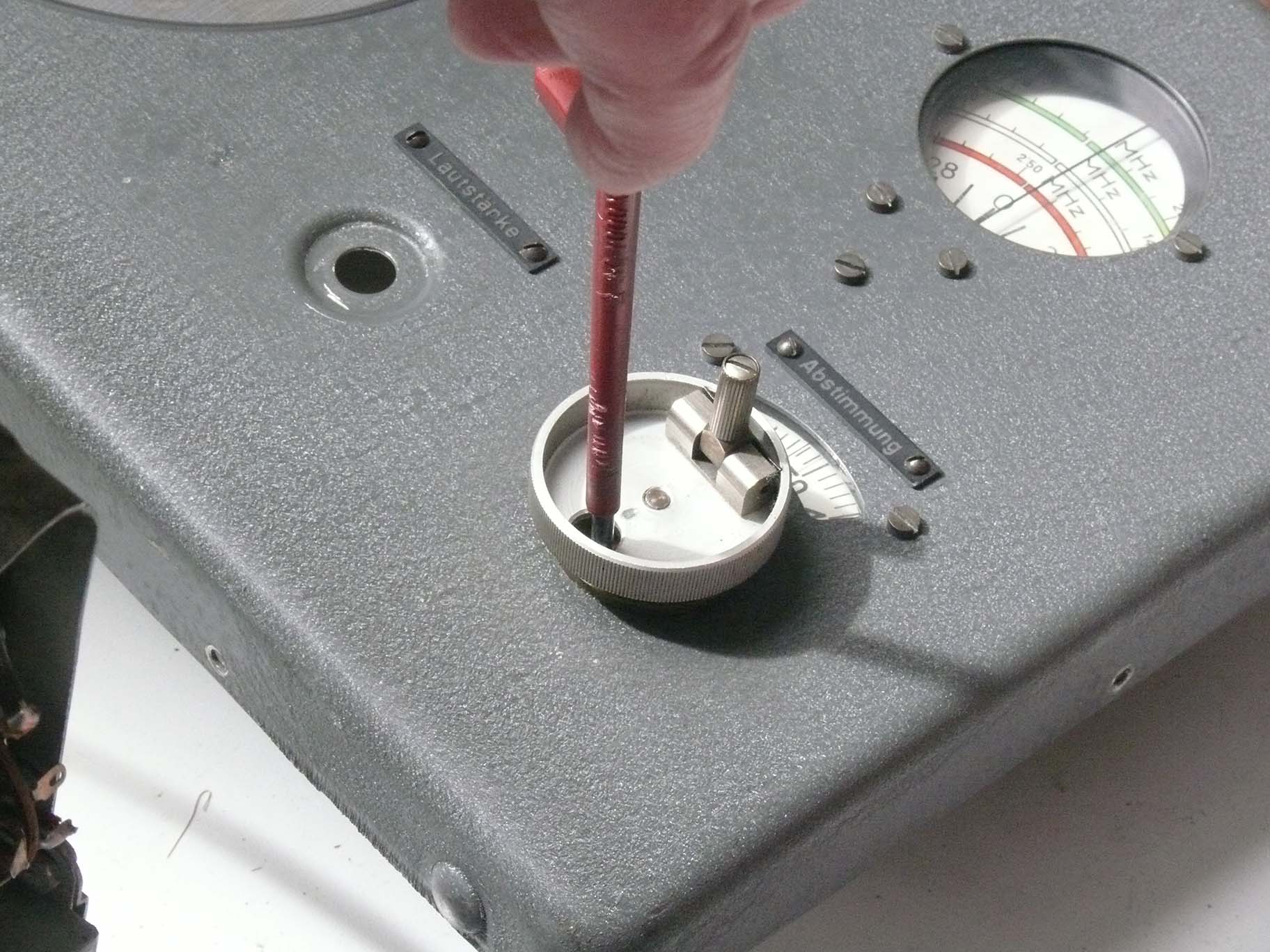 Quite difficult to explain is why the tuning-shaft was to be adjusted onto an invisible pertinax disk on which the tuning-scale is mounted. When the mutual friction isn't considered than, for example, the disk-teeth can be destroyed