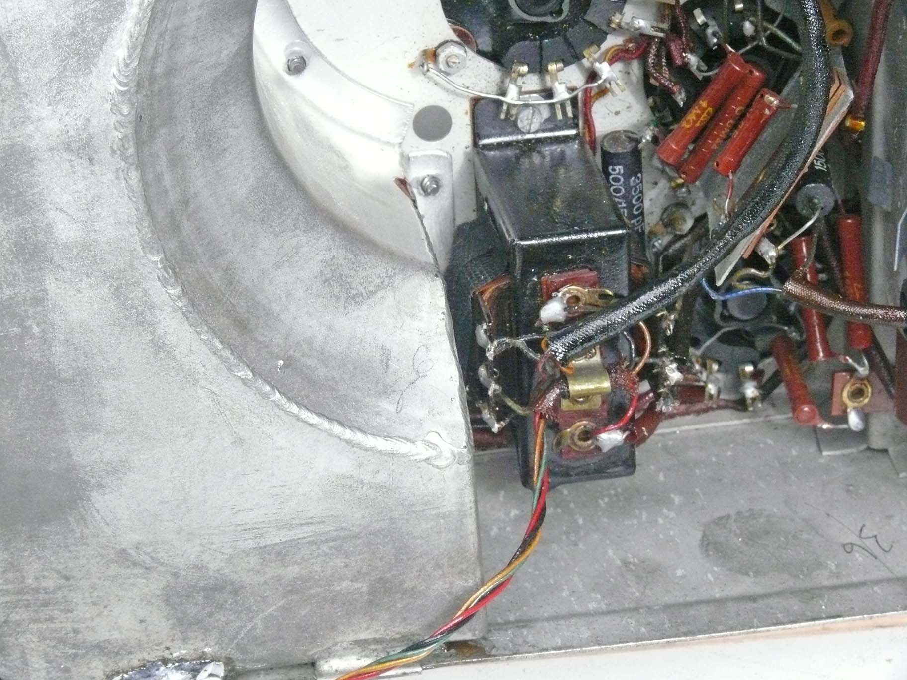 The yellow device is a bi-polar electrolytic capacitor (not yet mounted) the metal construction left-top in the background, should screen off from the power section, also screening off the vibrator circuitry.