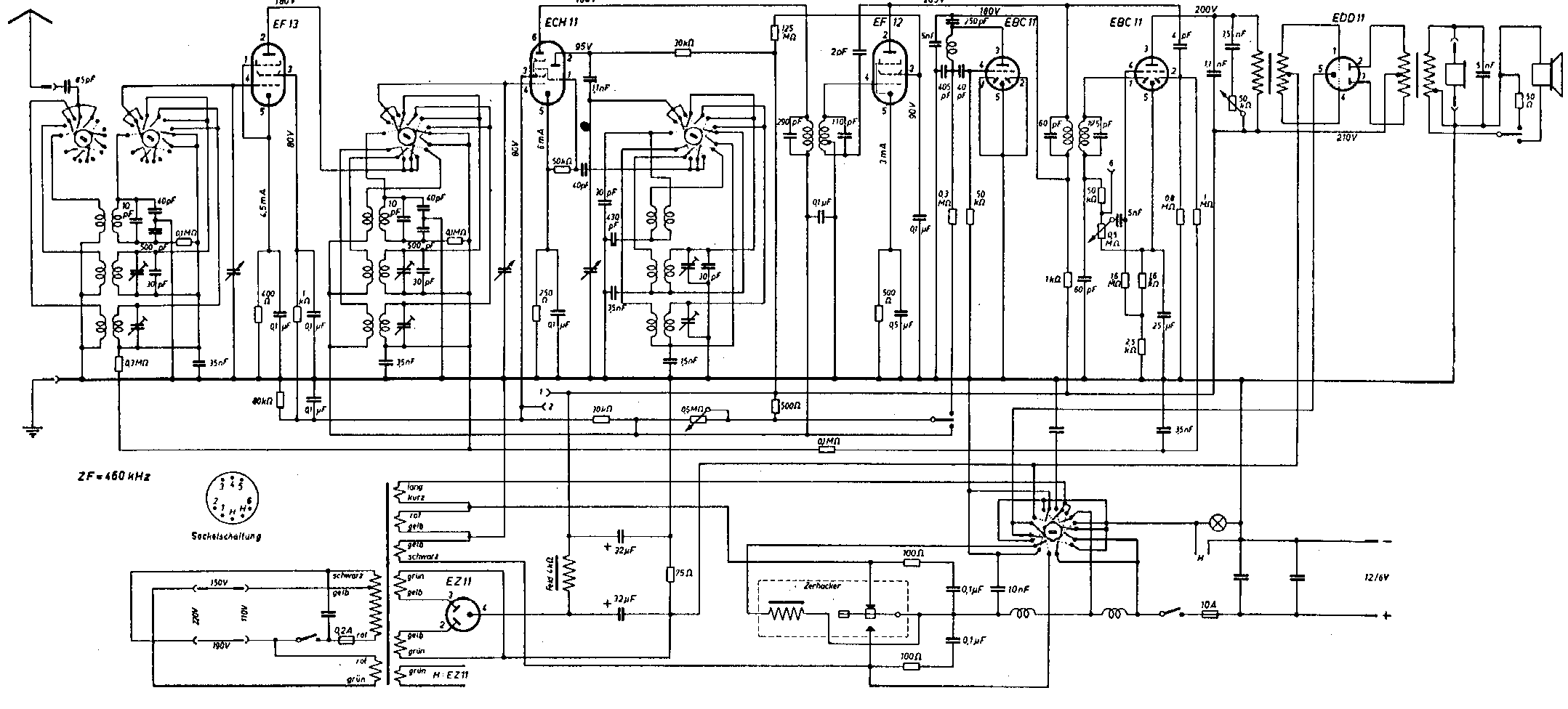 The main difference constituted the wiring of the valves, as these had, for battery operation, directly to be derived from the supplying battery voltage.