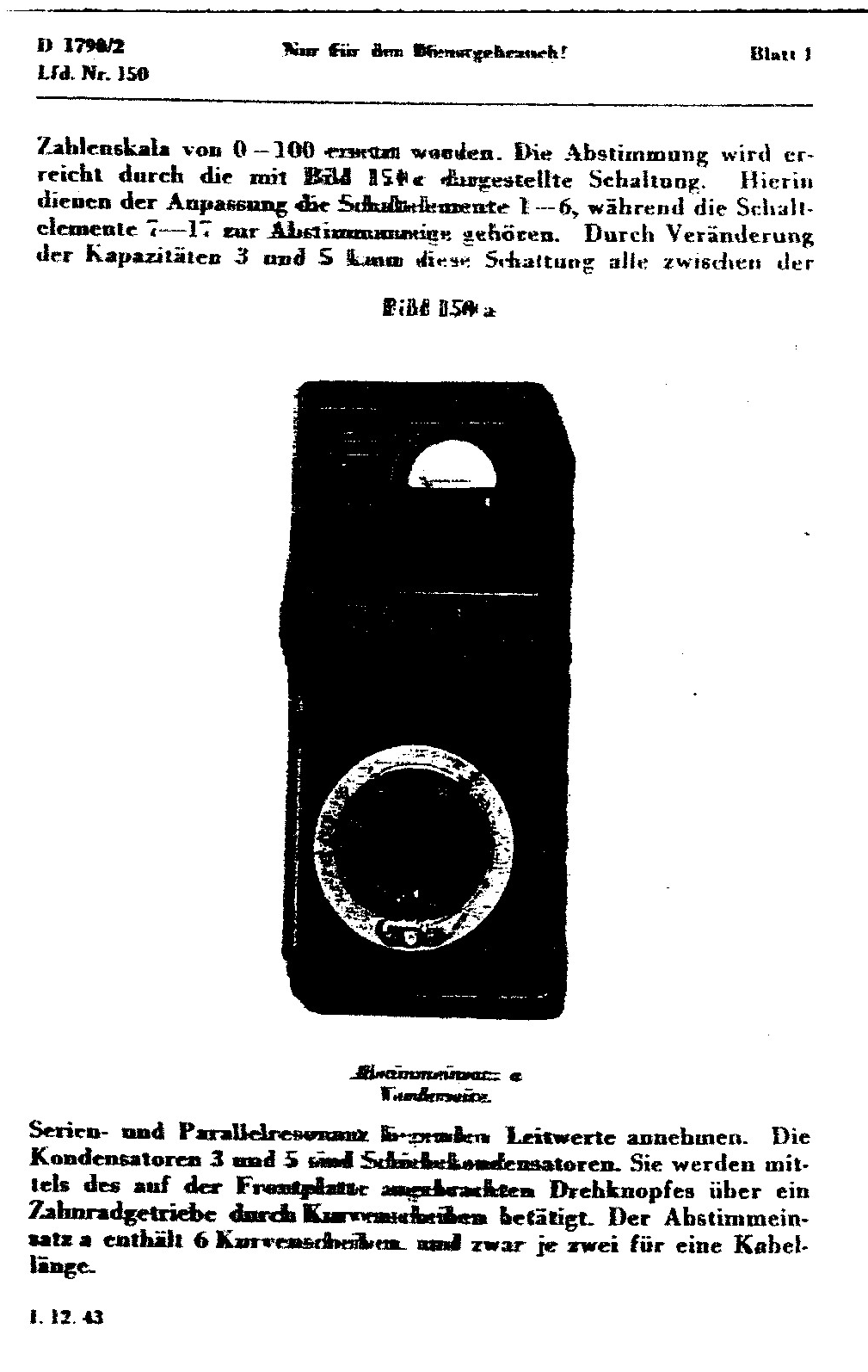 Followed by a discussion on aspects of this quite mysterious device. He gave me the above reproduced list, on which the Abstimmeinsatz is dealt with on the left-hand side column. The right-hand column concerns a different apparatus which was meant to match the 15 WS onto a symmetric antenna. Some suggest, erroneously, that the Abstimmeinsatz a was meant for tuning the 15 WS.