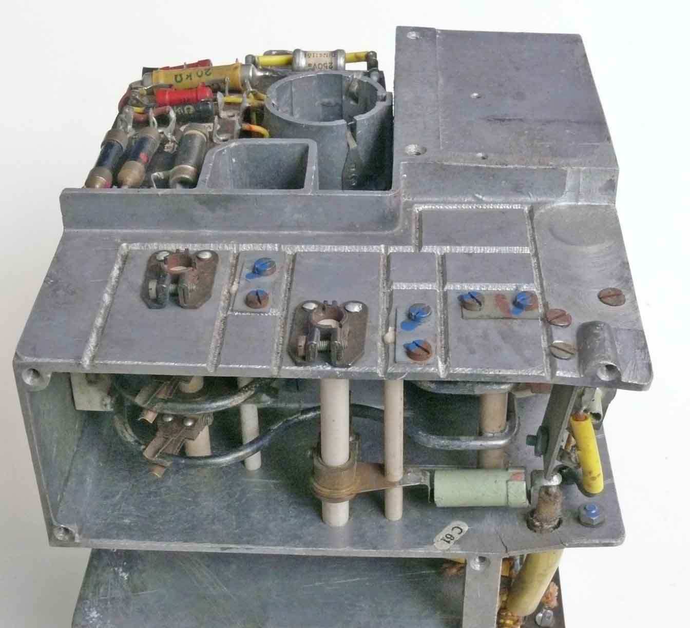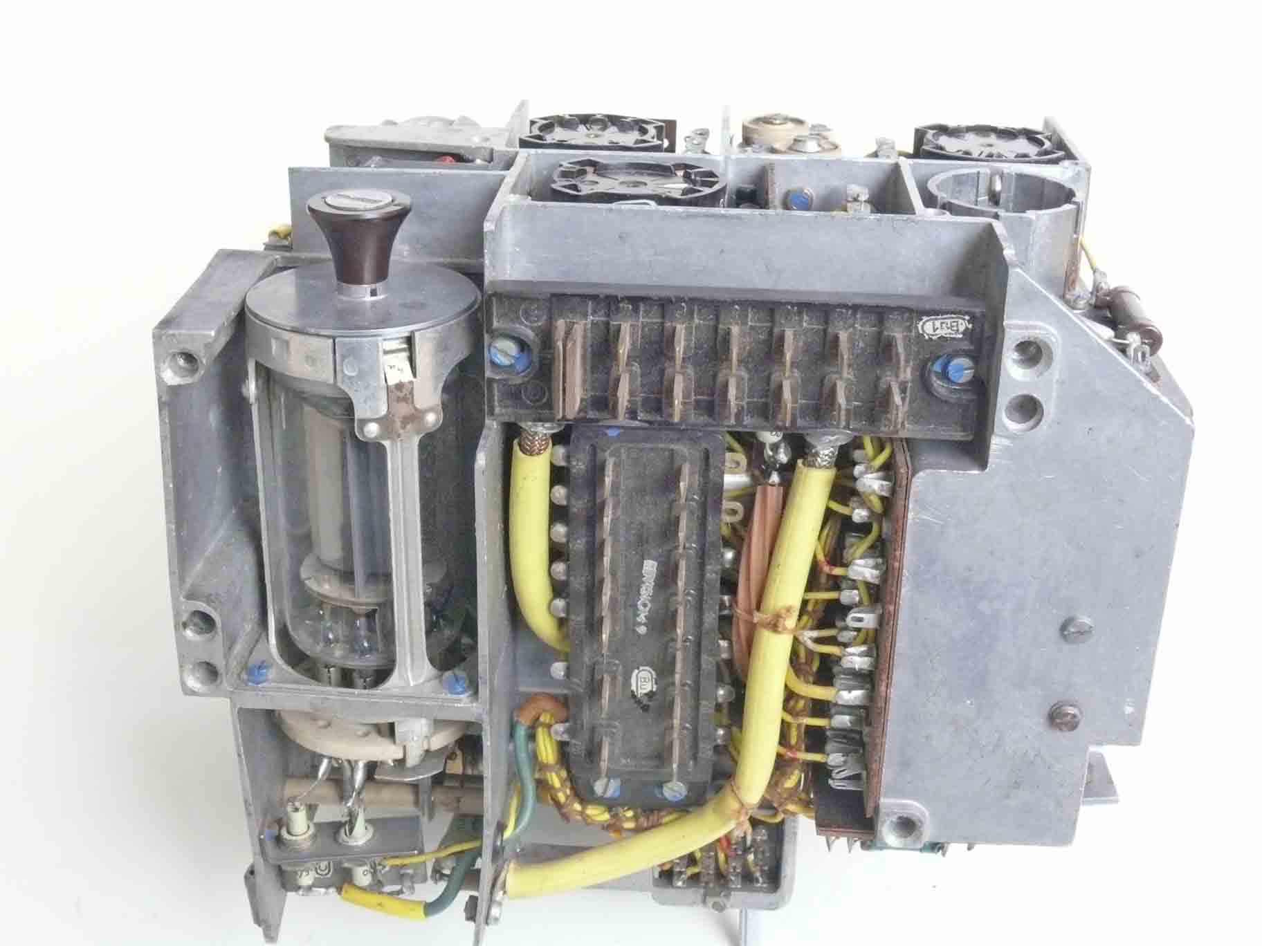 The upper module is like the previous photo, the lower section contains the modulator. In contrast to British H2S, it does not have the pulse forming HT section integrated as this was by German redesign an integral part of the transmitter section, which is from a technical point more appropriate, as the 10 kV pulse signal does not have to be fed by means of an external HT cable.