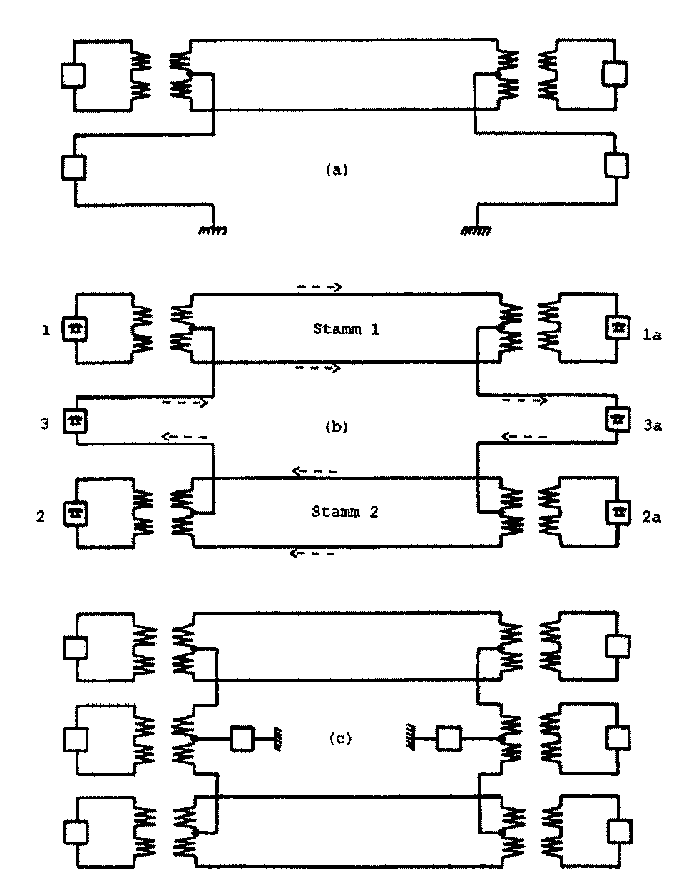 Stamm 1 and Stamm 2 are both connected in the centre of a single cable pair