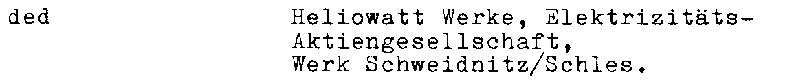 ded stood for: Heliowatt Werke, Elektriziäts-Aktiengesellschaft, Werk Schweidnitz/Schlesien
