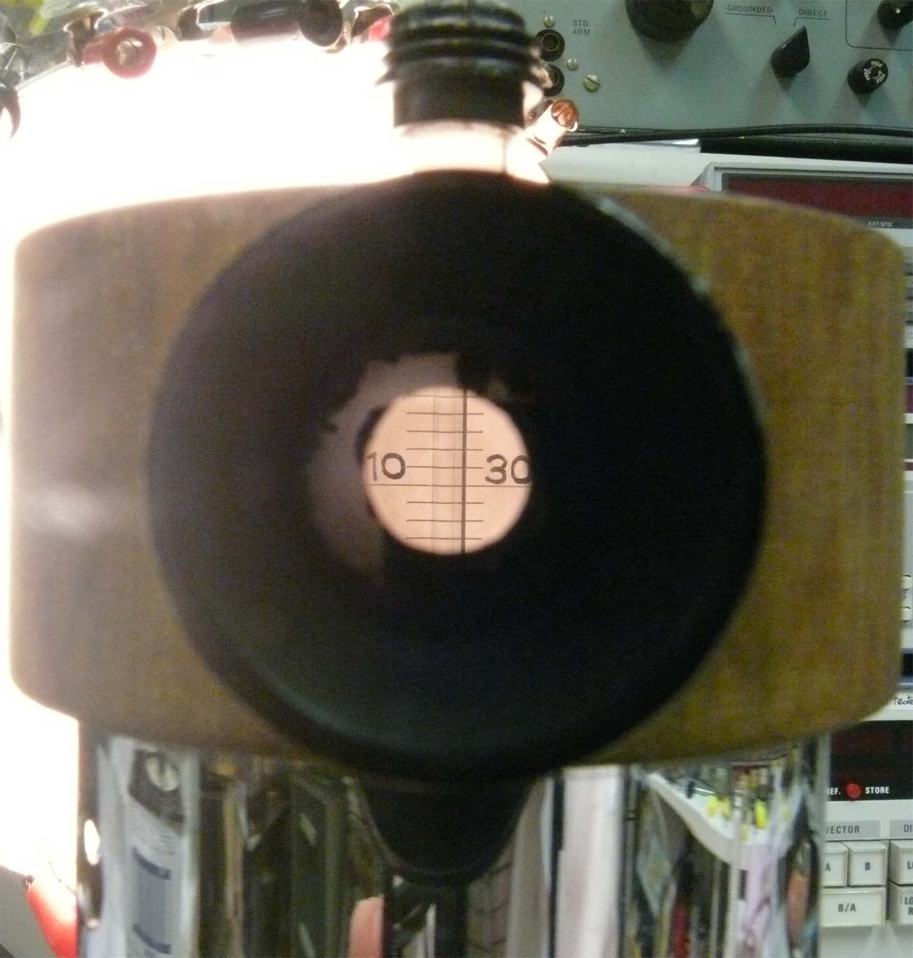 Looking through the lens in the upper section at the the thermometer like scale