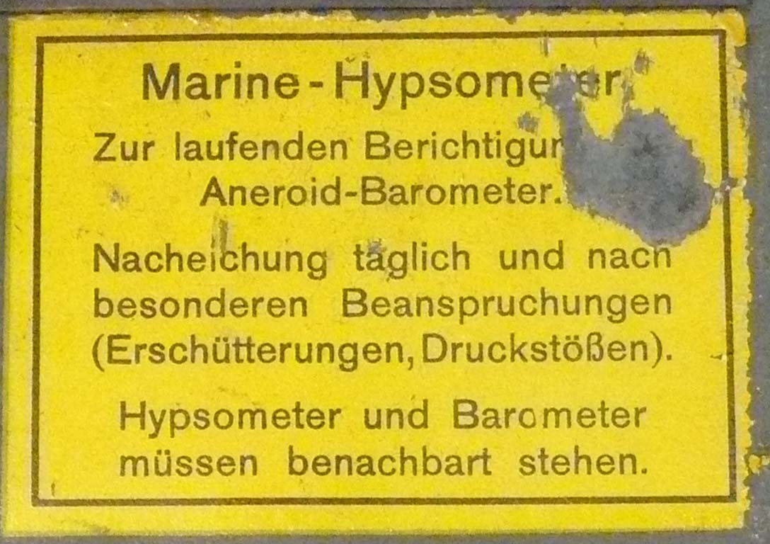 The Naval Hypsometer mounted at the box. On top of it the inserted 'Thermometer' device