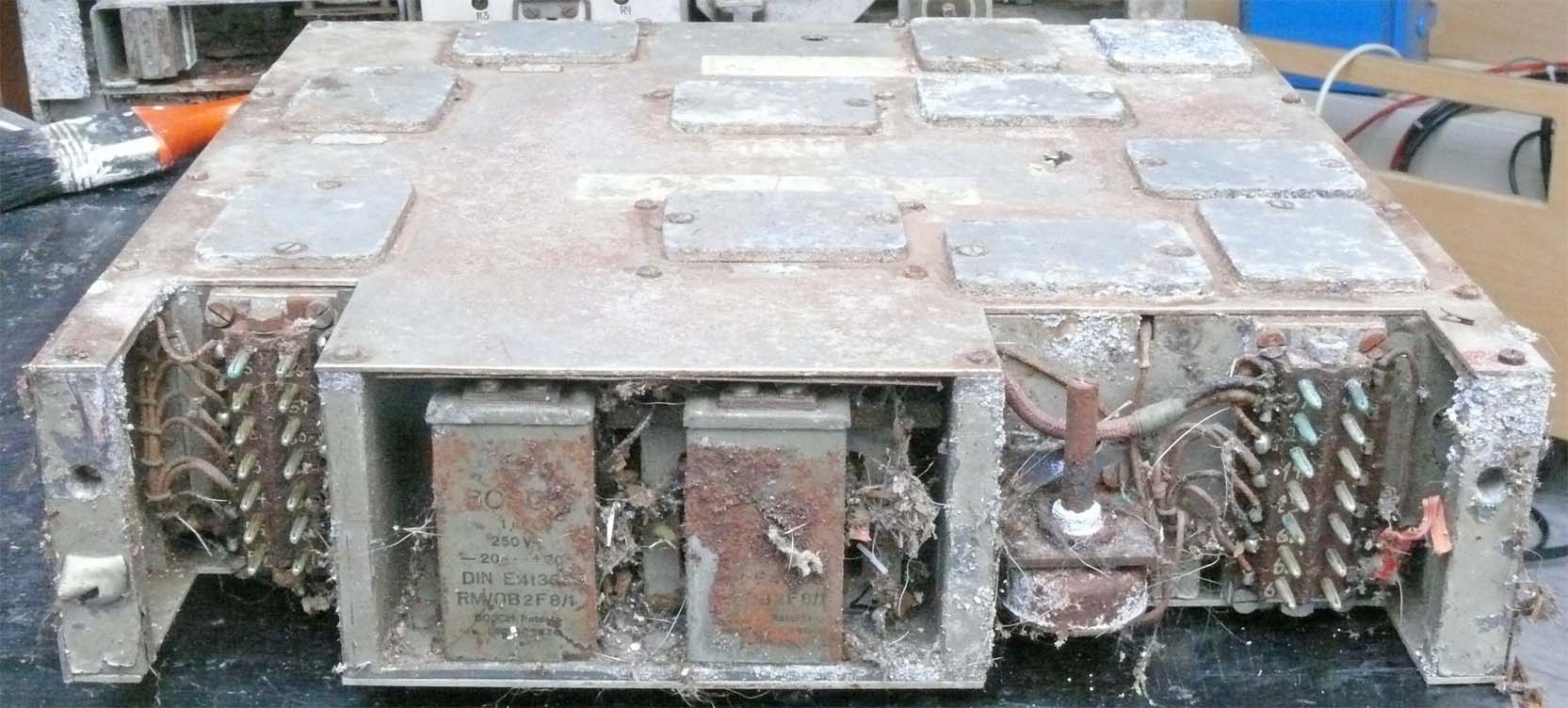 Please, notice also the dirt found between the module frame and the two standing capacitors.