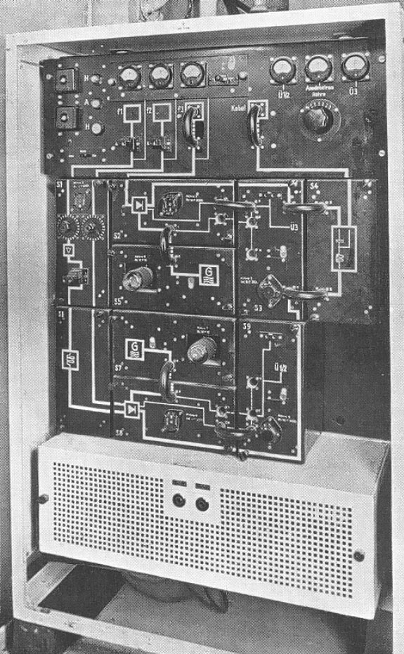 Please notice left of the transmitter/pre-modulator housing - the open T/R unit or Simultan-Gerät. Its appearance differs a bit from the original Reißersee I apparatus.