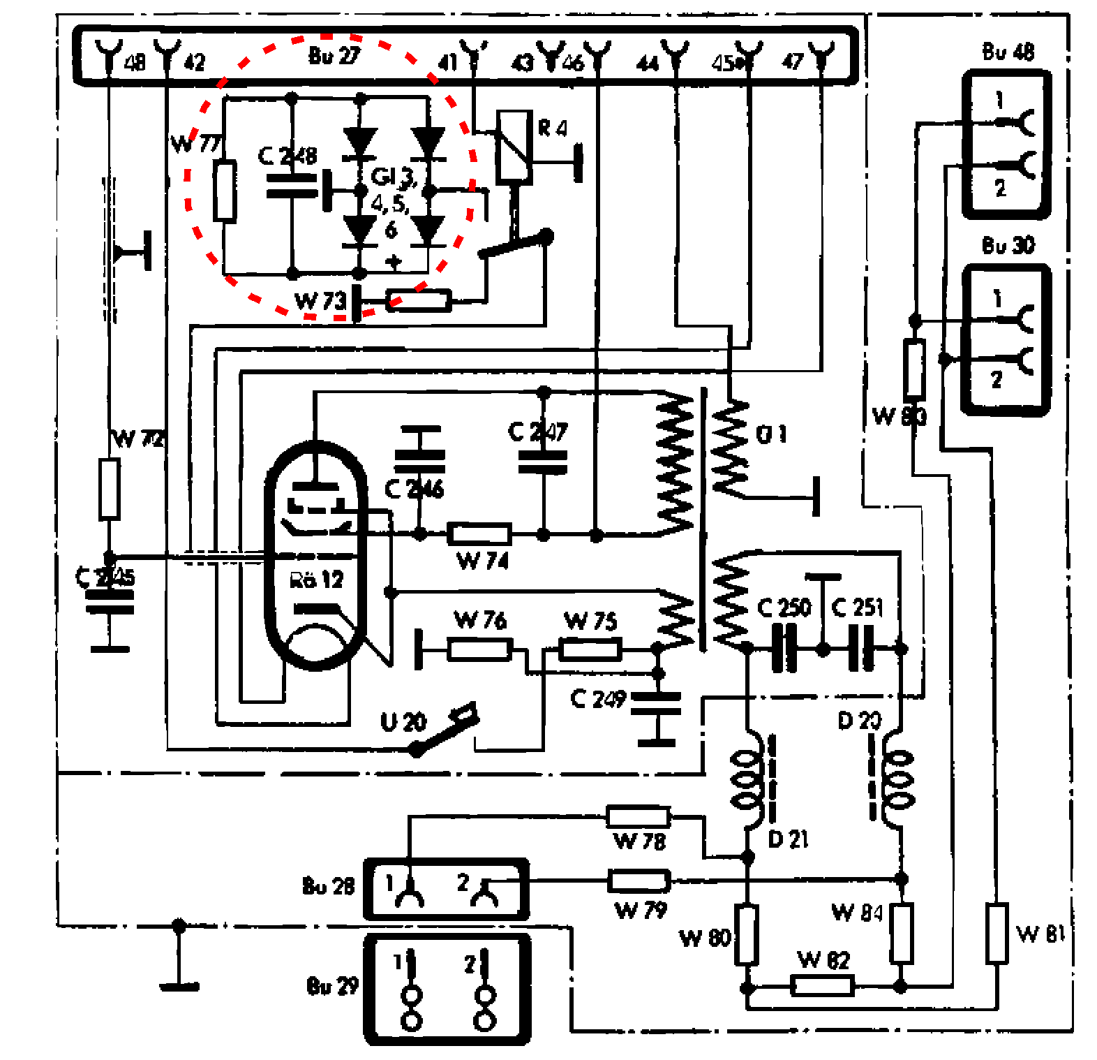 Schematic diagram of the audio stage (NF-Baustein) derived of the original E52a manual.