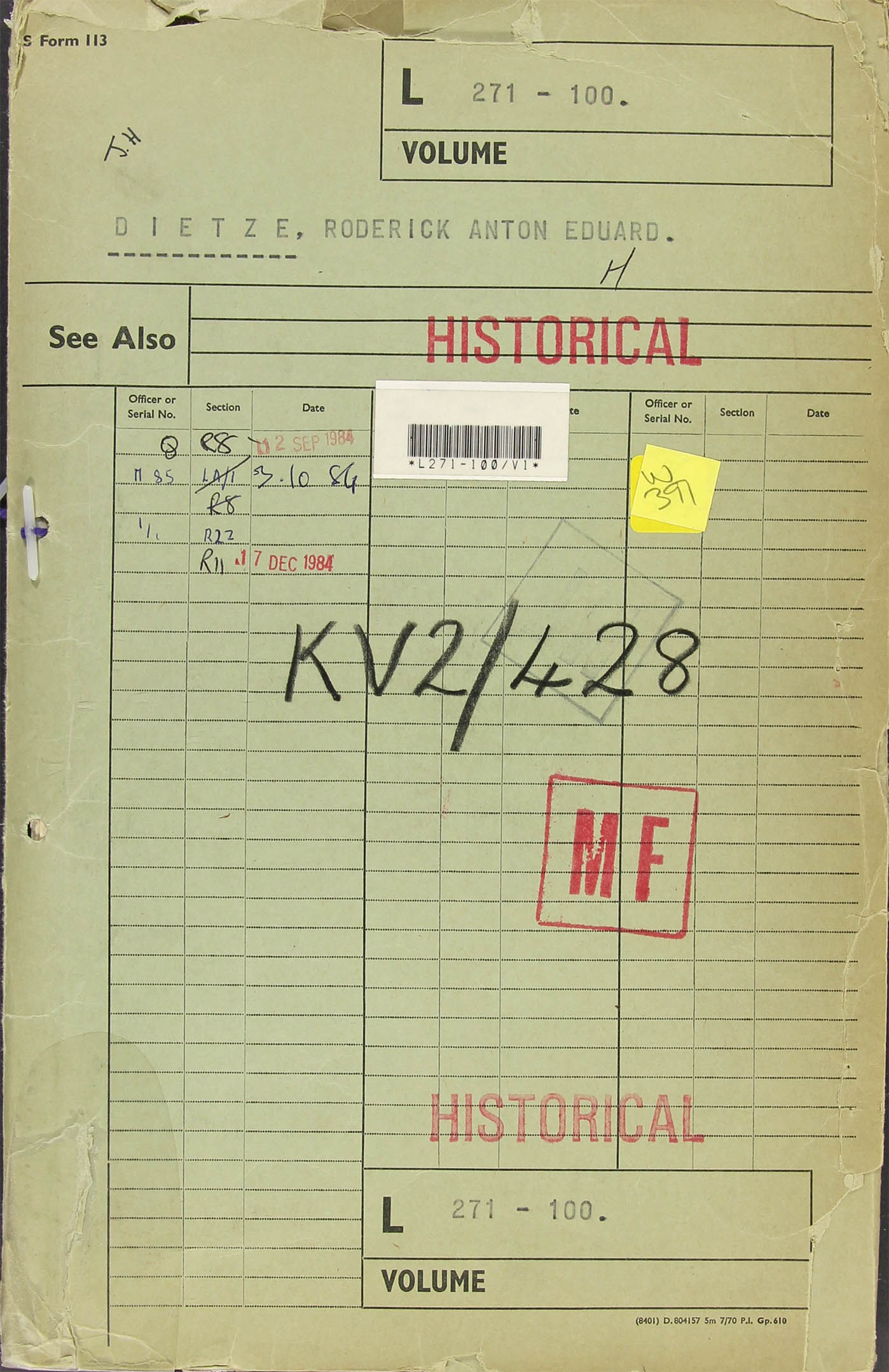AOB: please be always aware: that the KV 2/xxxx series are running backwards in time; due to the way it formerly had been collected. The KV 2/xxxx serials may originate from the 1950s, as formerly these were kept under their genuine PF serial-numbers.