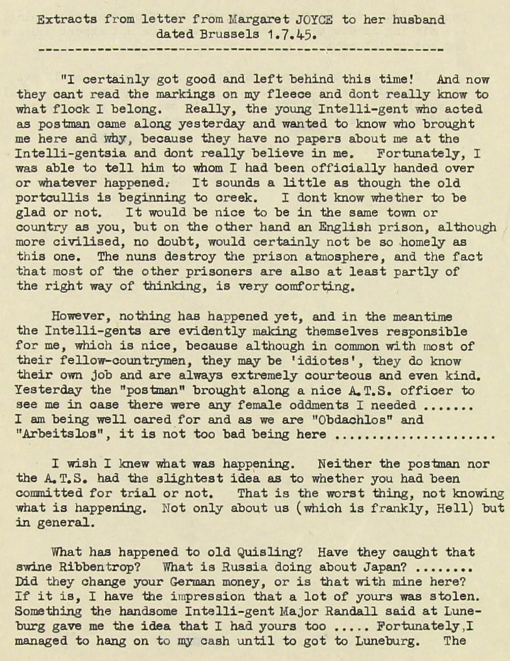 (This latter fact might imply that Margaret William Joyce wife was held in custody somewhere in Belgium)