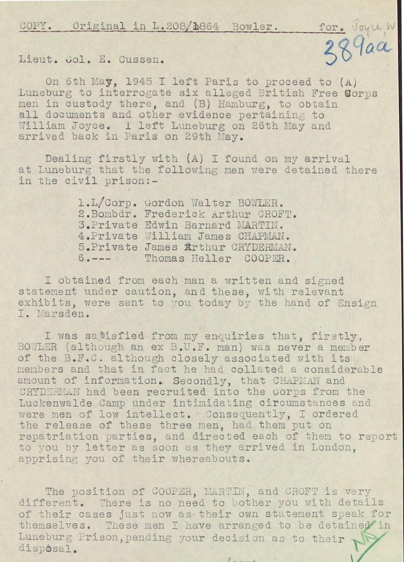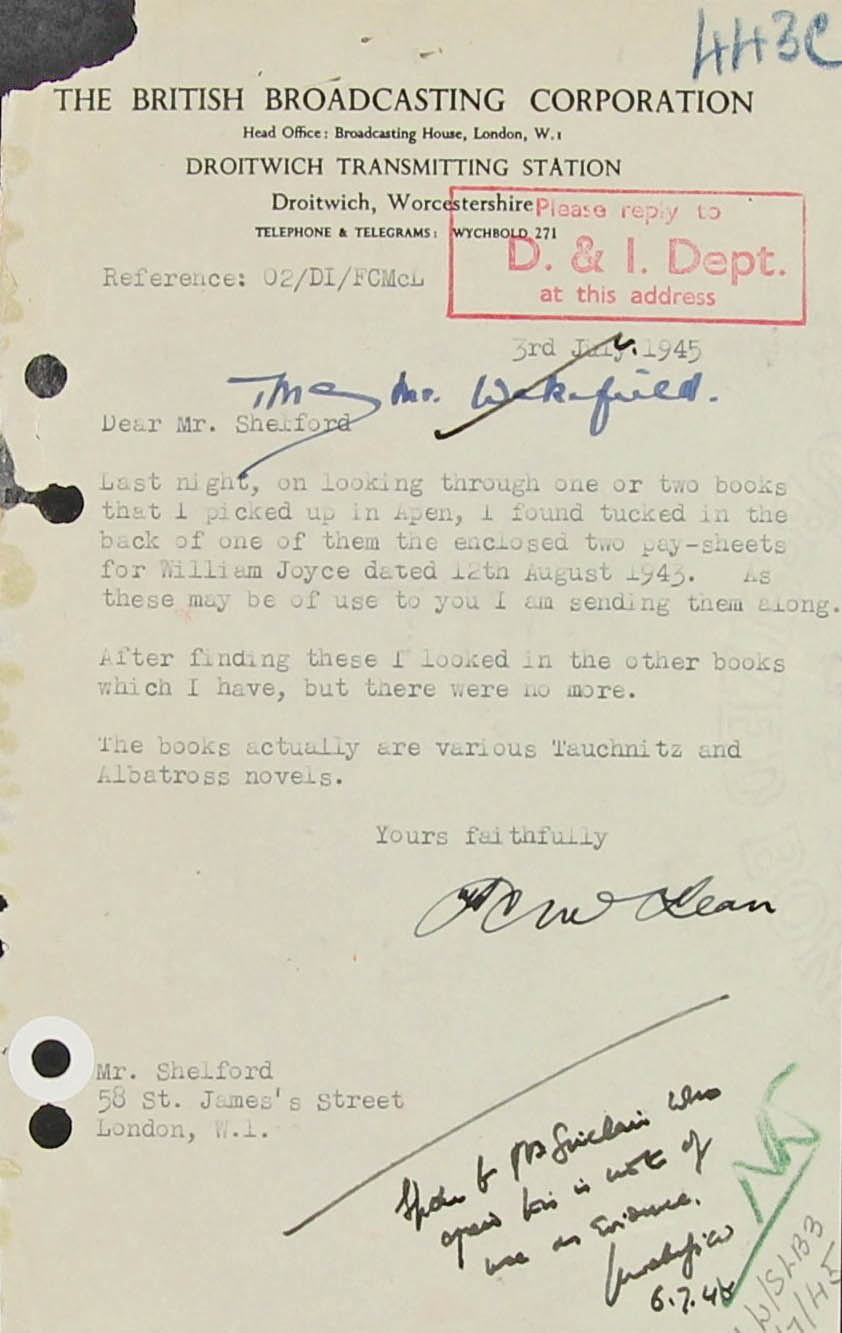 S.L.B.3 (Col Cussen) ... AOB: from experience I came more often across the designation of S.L.B.3. and then it was connected with the prosecution of someone. The text may refer to materials dealt with in the foregoing section: https://www.cdvandt.org/lord_'haw-haw'.htm