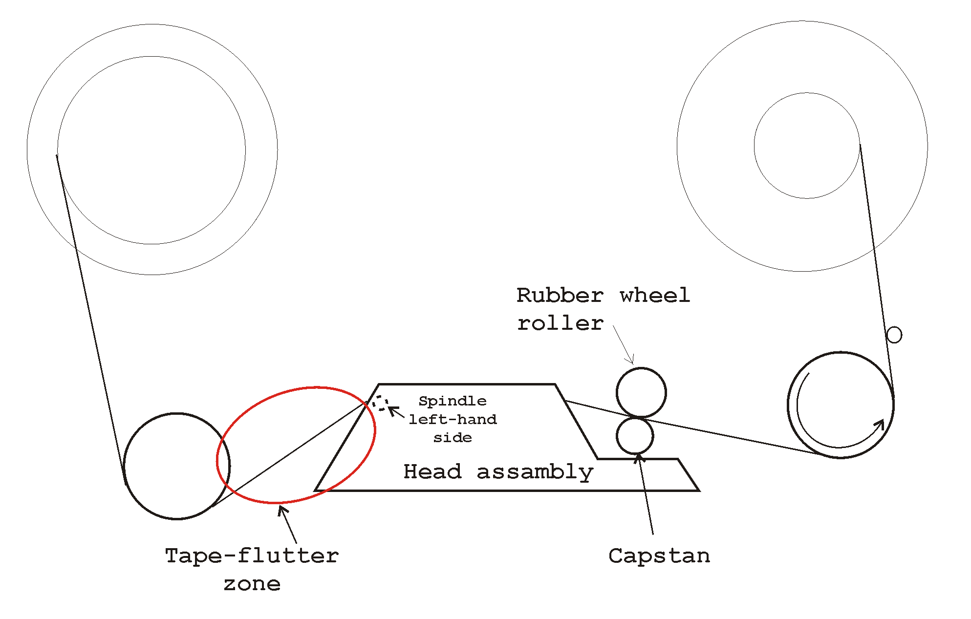 Another phenomenon that was encountered, unusual tape flutter; which is dealt with in the next two line drawings.