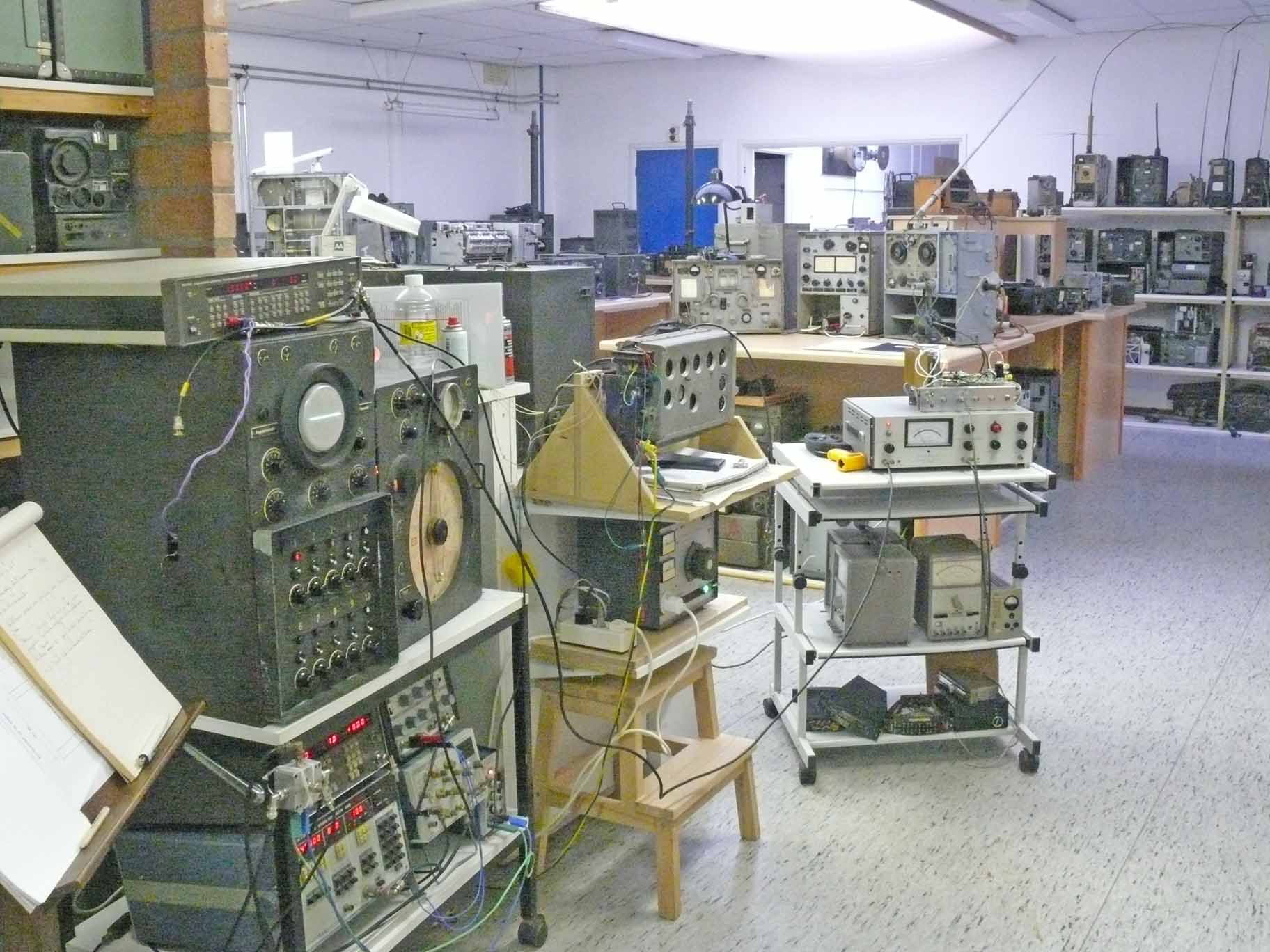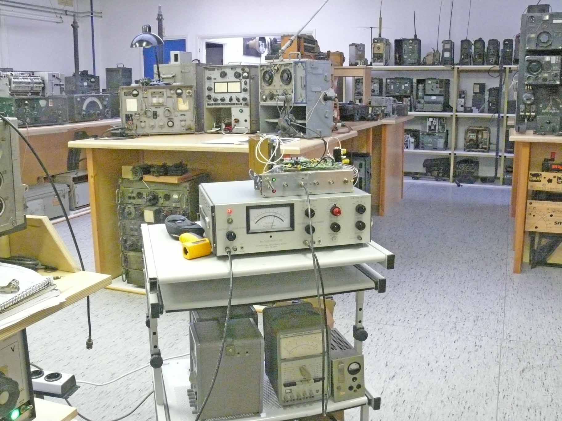 On the left-hand side on top the EGON PRF (502 Hz) synthesizer - below the R&S signal source - right of it the two pulse generators fed from sine wave signals (Nachtfee and EGON)