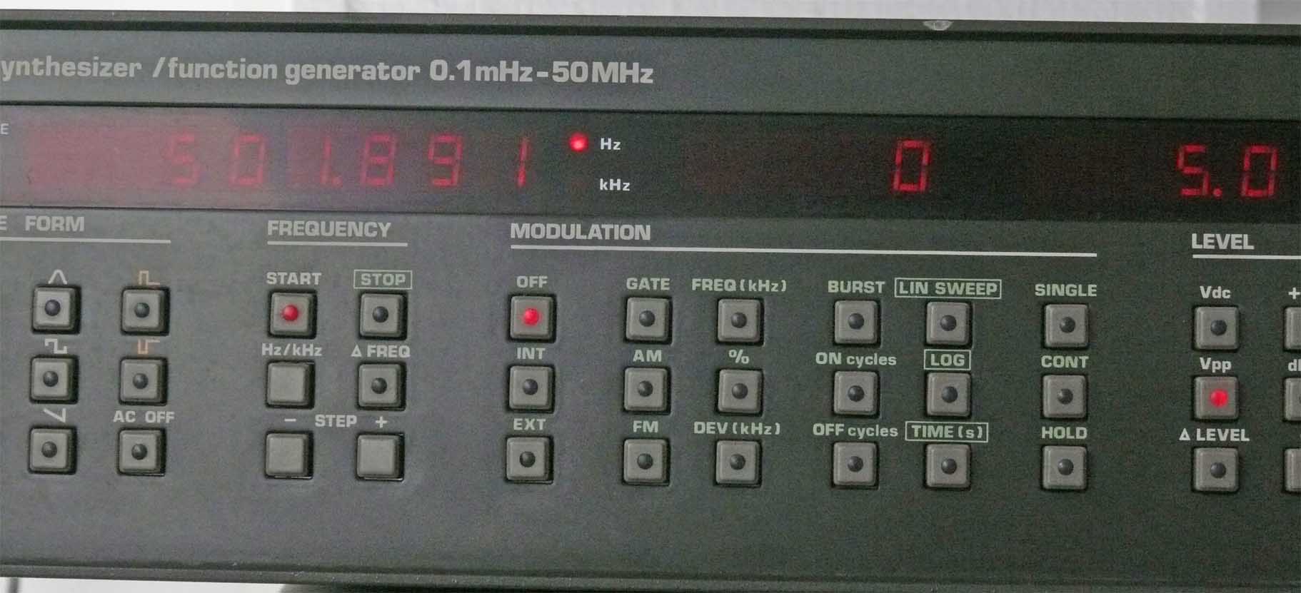 This apparatus as well as our TTi one are having all the same facilities. Albeit, this one allows better pulse settings. It is fed not from the Nachtfee console but from the Philips PM5190 synthesiser set at 500 Hz.