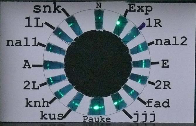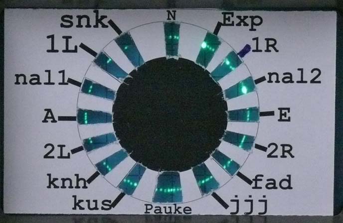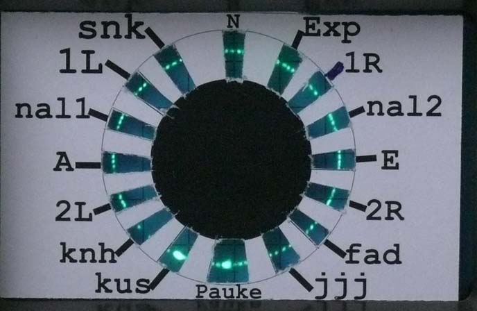 However, why not giving it a try and making one (dartboard window) myself on the computer, of course adapted to our simulated situation? The Nachtfee 'order' or command compass scale is using a pointer (the small one). The successions of orders and its accompanied vector must thus be equal in the aircraft display system too. Small drawing distortion is due to the fact that I relied upon a photo which has a parallax error and a circle was never a true one though an ellipsoid.