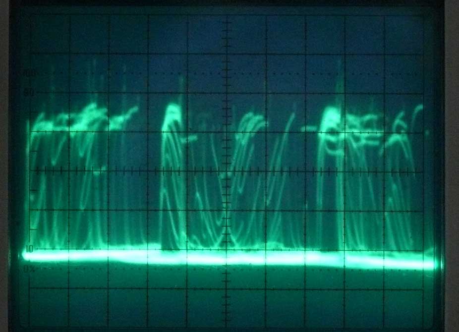 FuG25a RX signal output measured at test-pin 9 (at the FuG25a front panel). Again, the data seemingly is more complicated than it actually was, owing to the camera exposure time