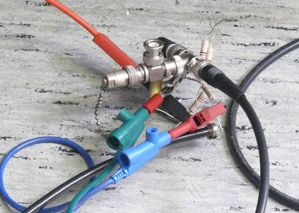 The next step to be done is feeding the pulse PG 508 output pulse onto the HF pulse modulator, for which a new provision has to be made. Consisting of an additional BNC chassis plug. Internally I have in mind to add among the basis bias limiting resistor two Schottky diodes as to prevent overloading of the pulse generator output stages. Above the R&S SMS HF generator we see the PM5190 synthesiser set at 500 Hz, simulating the EGON PRF.