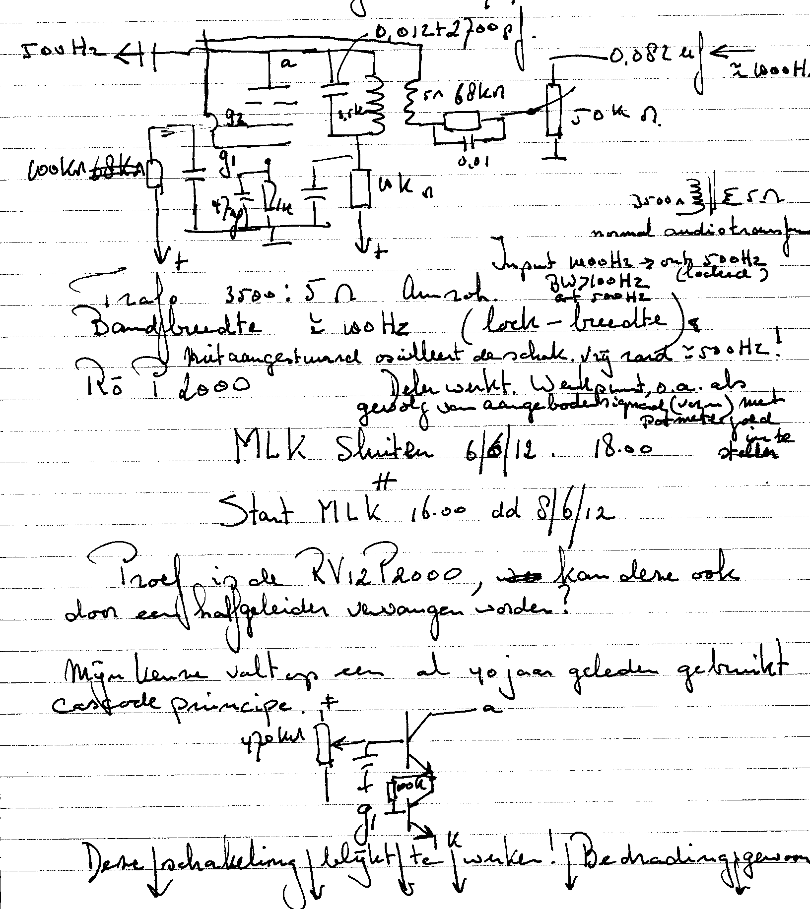 I continued experiments which I have started yesterday 5 June. My aim first is, to build myself a frequency divider, which is capable to divide the existing tuning fork signal of about 1000 Hz into a proper 500 Hz signal.