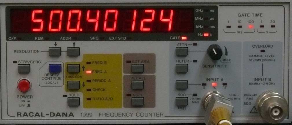 Divider being locked upon 1000,80248 Hz providing after division by an order of 2 500.40124. One may ask why not 500 Hz exactly. The answer is quite simple, because I used HP RC tone generator, which was manually set at about 1000 Hz (please notice the previous photo)