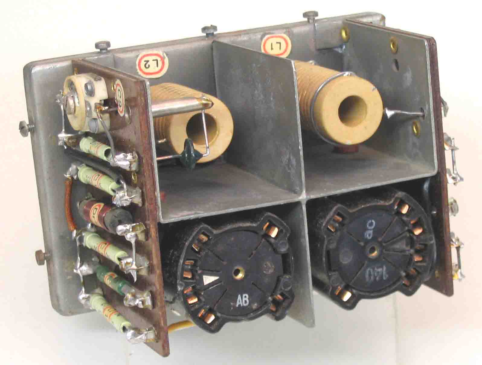 NEG62 without cover. The coils L1 and L2 are silver deposit at ceramic bodies. The antenna-plug is visible in front, on the left.