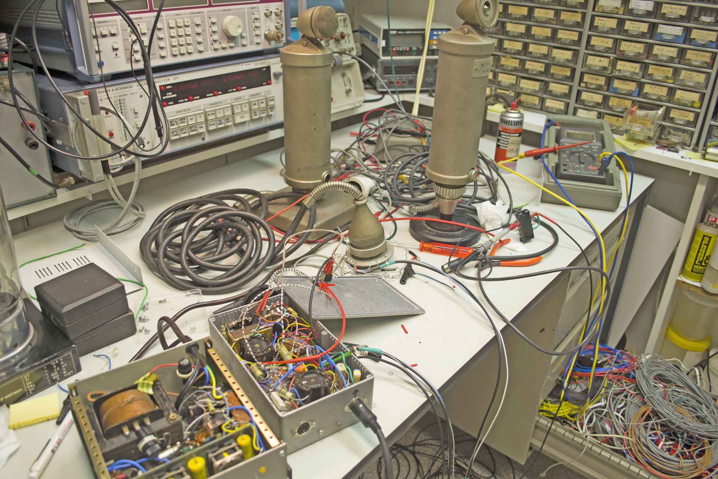 However, together with our Magnetophon T8 we got two Neumann early type microphones which were once 'modified' and the old RE084K valves being replaced by EF86 valves. For it also some supply changes had to be arranged.