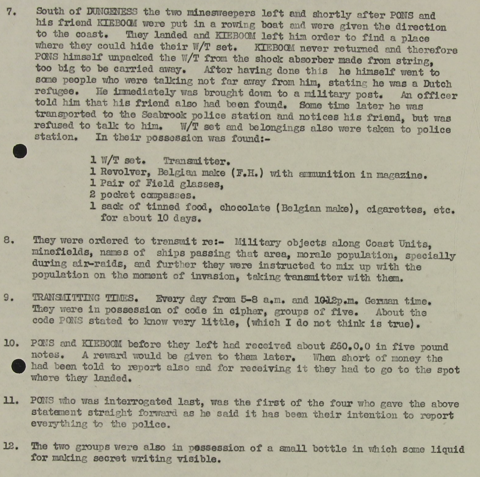 On 24.10.40, all four spies left Camp 020 and were subsequently tried at the Old Bailey. Walberg, Meier and van den Kieboom were found guilty of espionage. Waldberg and Meier were hung at Pentonville Prison on 10.12.40. Van den Kieboom at first asked leaved for appeal but later withdrew his request and was hung on 17.12.40. Pons was found not guilty on the ground that he was forced into the work against his will. On 10.2.41 he returned to Camp 020 where he remained in internment.