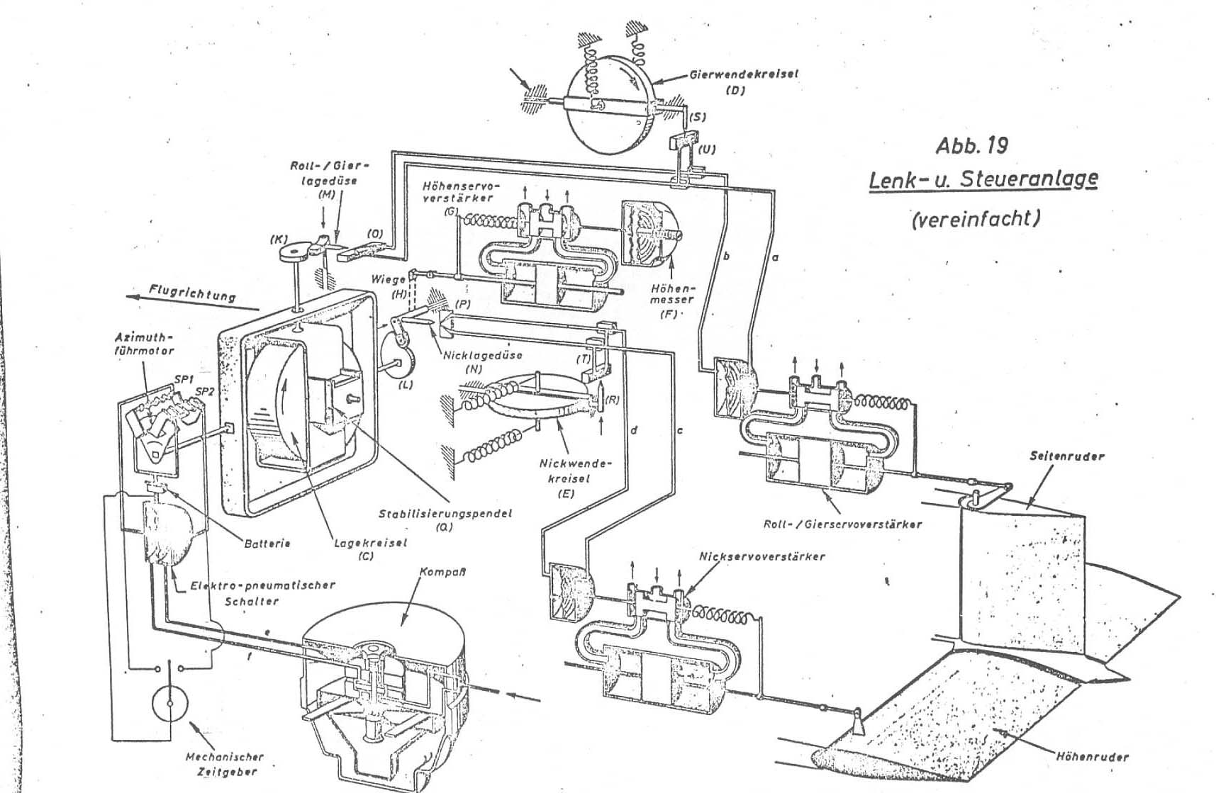 The principle of the gyro-controlled steering of a V1 (Fi 103)