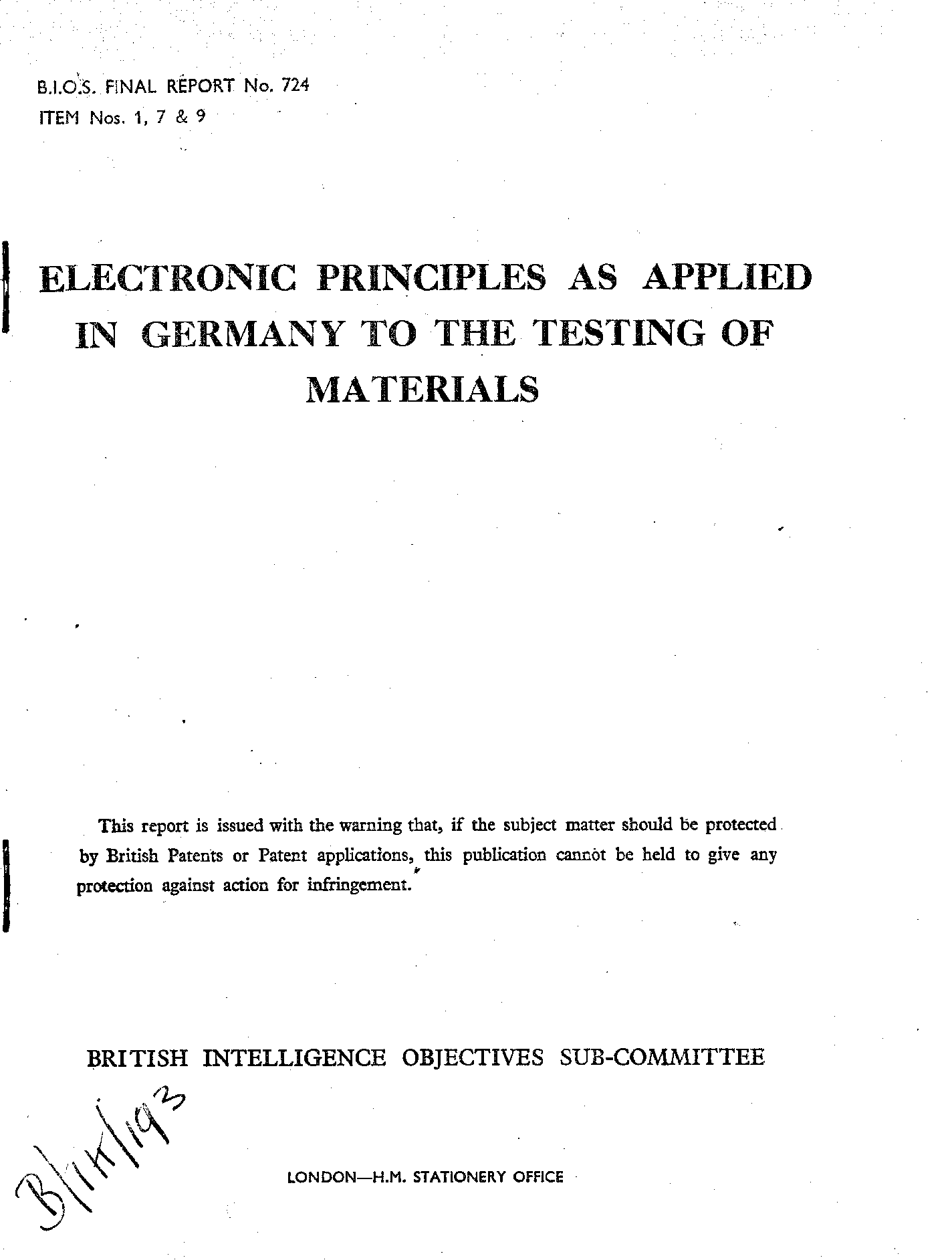 Keywords: Hartmann&Braun; Schoeller & Co; Material Prüfanstalt; K.W.I. Heidelberg; P.T.R. Heidelberg; Daimler-Benz; Institut f. Kraftfahrwesen Stuttgart; Dr. Staiger Kirchheim Teck; K.W,I. of Metallforschung Stuttgart; D.V.L. (Aerodynamik Sonthofen; Aerodynamisches Institut Sonthofen; Ott & Sohn Kempten; M.A.N. Augsburg; Forschungsinstitut T.H. München; Steeg & Reuter; Dr. Bergmann Wetzlar; Askania berlin; Siemens Wernerwerkdamm Berlin; Maihak Hamburg; Haul's Sound resonance Method; Accelerometer for Aircraft; Lehr's Strain Gauge; Four-circuit bridge for Lehr's gauge; Siemens Permalloy Pick-up and circuit; Dissertation on Ringgeber Theis (A.E.G. = AEG);Oscillation Measurements with Electrical Apparatus Schilling AEG; Latest Developments in the use of Supersonics in Chemistry (Schmid); Effect on Intensive Sound on Molten Metals (Schmid & Roll); Influence of Supersonics on Magnetic Behaviour of Nickel (Schmid & Jetter); There seems to have been few striking innovations in German technique, although, quite a lot has been achieved by thorough development of well known principles ... ; Dr. Gauer K.W.I. heidelberg - Dr. Frey - Infra-red spectroscopy using infra red to kill phosphorescence .. ; PTR Heidelberg, Dr Scheibe - Dr. Adelsberger - Dr. Hoyer - Dr. Helmhotz - Dr. Schaffeld when in Zeulenroda; Dr. Forster - Prof. Grube - Dr. Kubaschewski - Prof. Glucker - Dr. Richter - Dr. Gebhardt; S&S some glued joints on some timber framework in the Building Section ... ; Z.W.B. Zentraale für Wissenschaftliche Berichtewesen über Luftforschung Berlin Adlershof - Prof. Bollenrath - Prof. Weise - Prof. Schmidt - Dr. Philippovich - Dr. Runge - Prof. Nüll - Prof Lurenbaum - Prof. Quick - Dr. Schmiescheck - Dr. Hoppe - Dr. Himmler - Dr. Caroselli - Dr. Ramsayer - Dr. Ruff - Dr. Hauk Bollenrath's assistant ... ; M.A.N. Dr. Lehr - Dr. Bettschinger - Dipl.-ing. Bratsche - Dr. Skiba - Dr. Willms - Herr Kriebel; Askaniawerke ...; Prof Albert ... T.H. München - Prof. Meissner - Prof. Foeppel - Dr. Piloty - Dr. Schumann; Steeg & Reuter Target C1/655 ... Dr. Zobel ... ultra sonics ... quartz transducer .. A quartz frequency standard with adjustable frequency was also seen. This apparatus is of such general interest that a translation of Zobel's original description .. - Accelerometer .. Pressure Pickups; Target C1/840 Dr. Bergmann ..C.O. at Leitz - Pohlmann and Schockolov - (Kruse Telefunken Lab. at Leubus near Breslau) - dr. Kneser - Dr. Eucken - Heidemann ....; Target 1/332 Askania Werke Bln - Ing. Imhoff - Mr. Markworth, Mr. Ascheuer - Dachsell .. Dipl.-ing. Behrmann .. Lerh's strain gauge!! ... ; Target 1/66 (g) AEG Seestrasse 66 Berlion .. Dr. W. Redepenning - Dr. Herman (Hermann?) Herr Winkler ... Prof. Thum high-speed cine cameras 80,000 pictures per second .. Eltas Inductive Test Gauges .. Carbon film piezo electric quartz ... ; Target C1/01(h) Siemens Wernerwerkdamm Sweibert Weg Berlin .. dr. Thal - dr. Sauger - Dr. Sorge Thal's assistant .. Permalloy ... bolometer amplifier Dr. Sell .... ; Target C1/831 H. Maihak A.G. Semperstr. 39 Hamburg Herr Gutbrod - Dipl.-ing. Knoll ... acoustic strain gauge ... ; Neher Inventor of electro-magnetic torque-meter ; dr. Grube K.W.I. ... ; Reduction of Metal Oxides .. ; Kinetic Measurements on Alloys Oxidation Diffusions and Transport; Research on the Electrolytic Refinement of Aluminium; The Effect of Ultrasonics on the Solidifications of Molten Metals; Construction of the Crystal holders - properties of Vario-Crystals; Radio-Measurments of Acceleration .. G. Loeser ... Accelerometer with capacitive transmitter slide condenser as capcitive ... ; Ring gauges ..