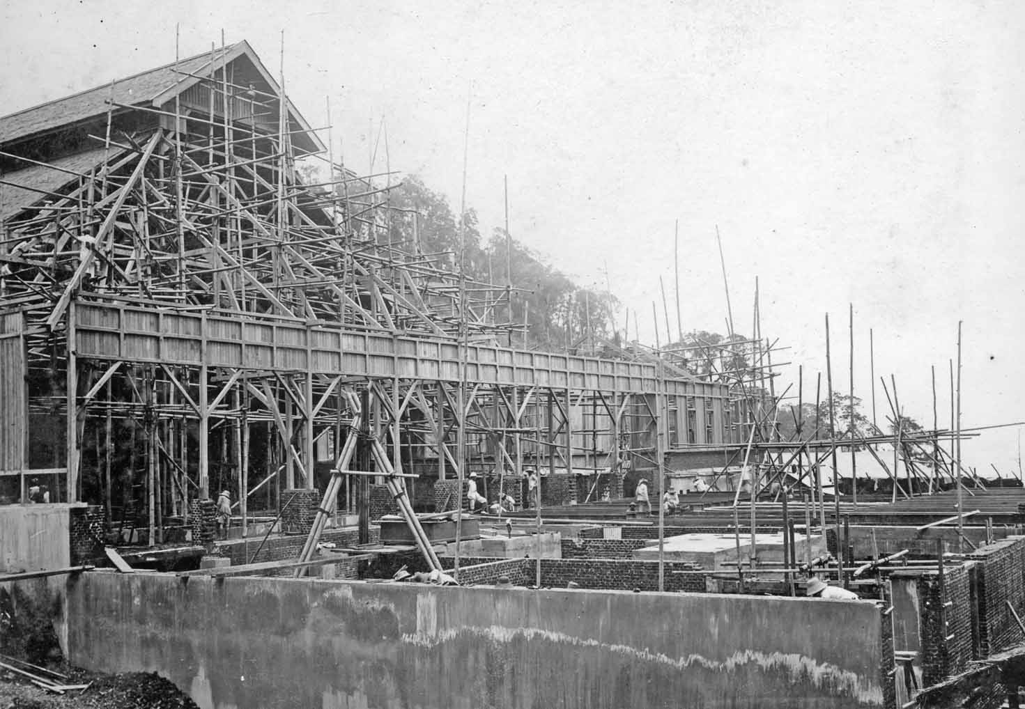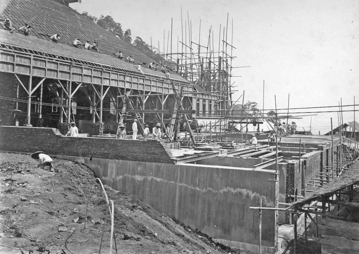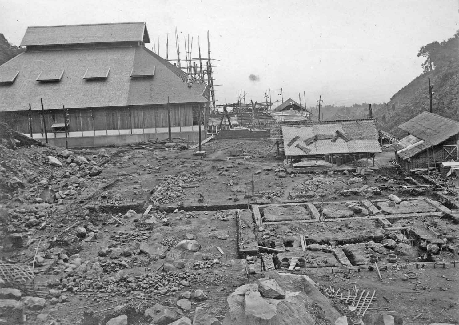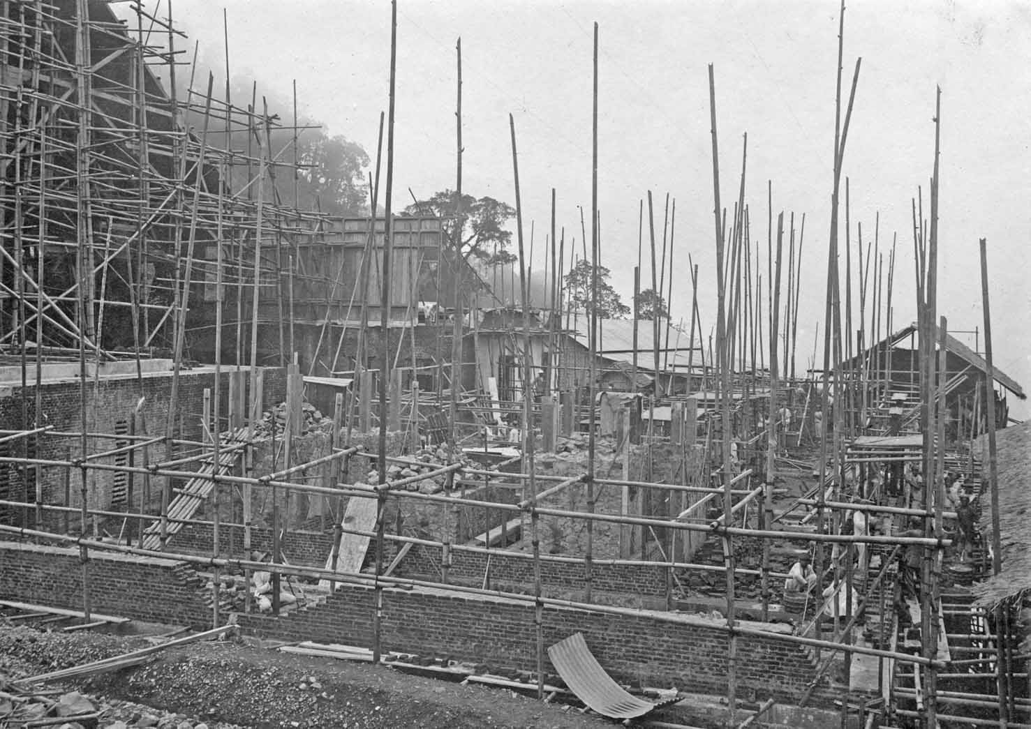 Laying the fundaments for the the extension hall for the Telefunken transmitter. Viewing in the distance the Bandung high Valley.