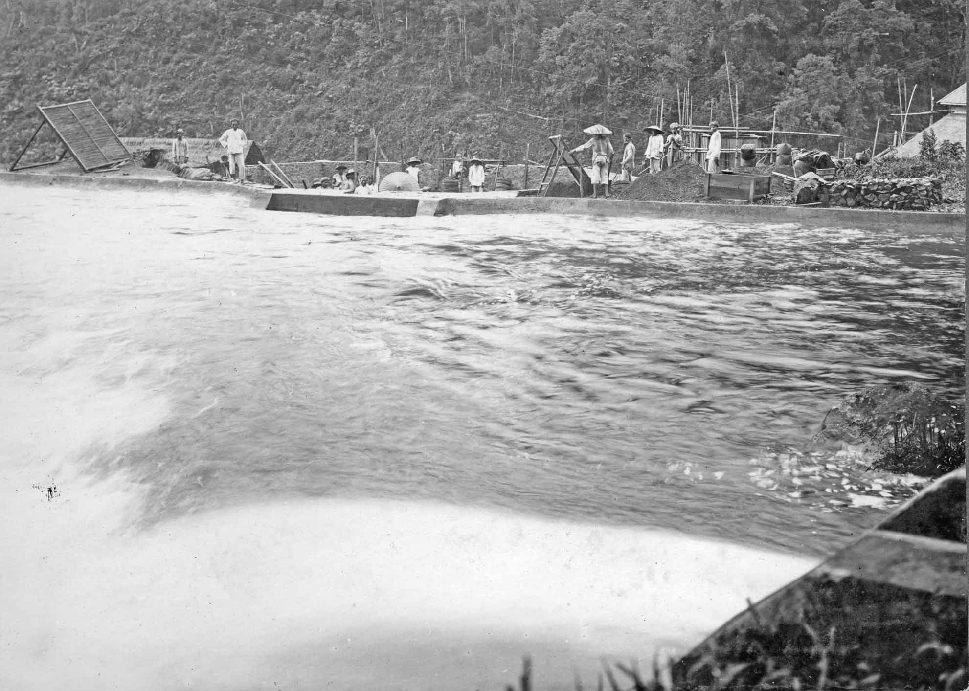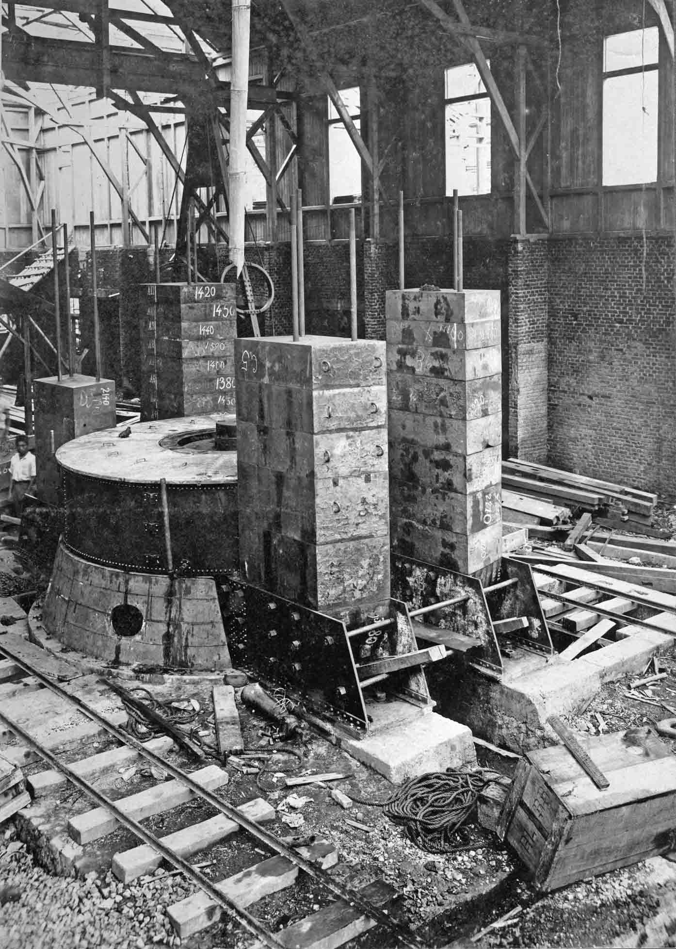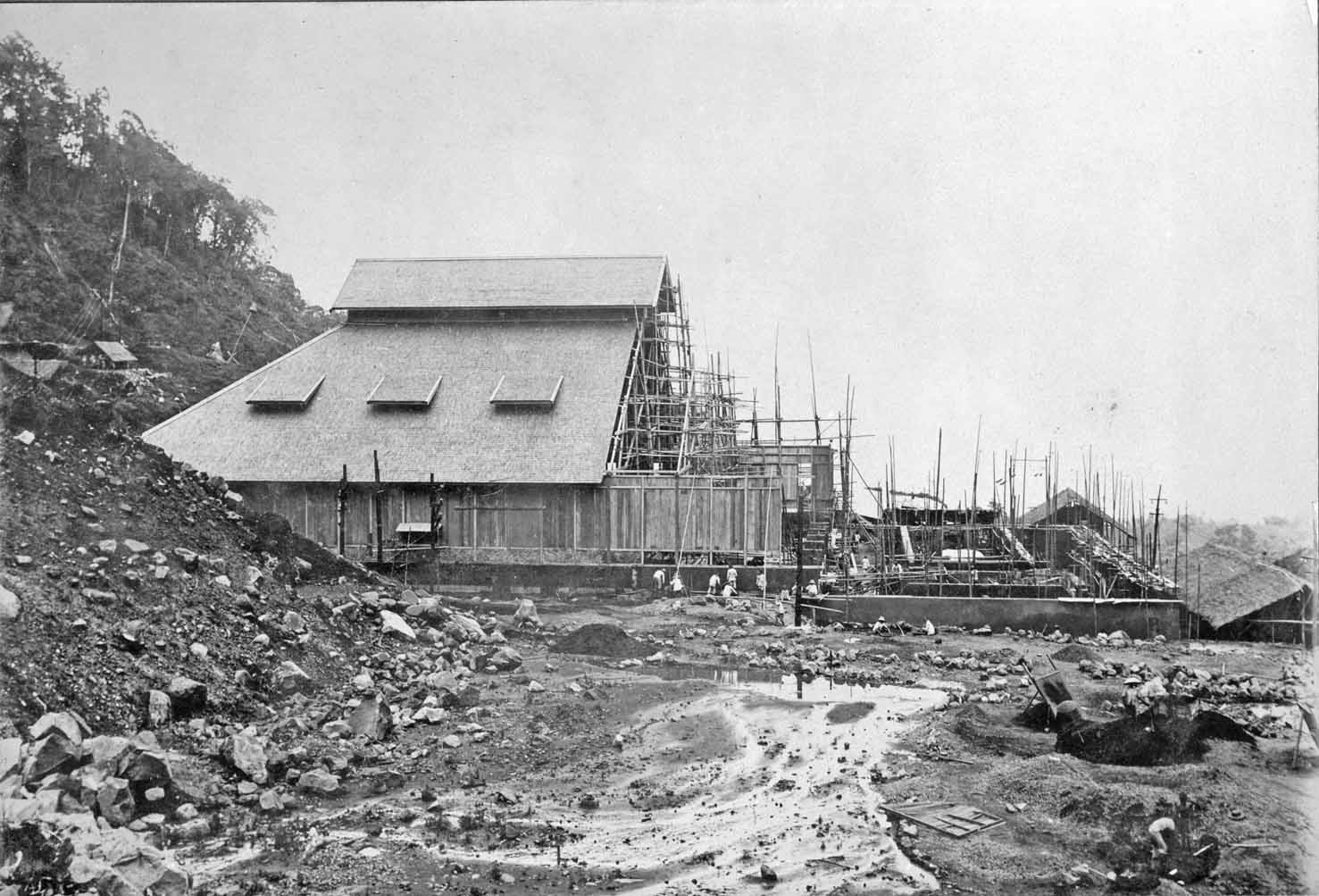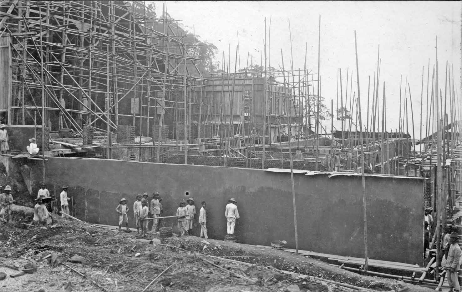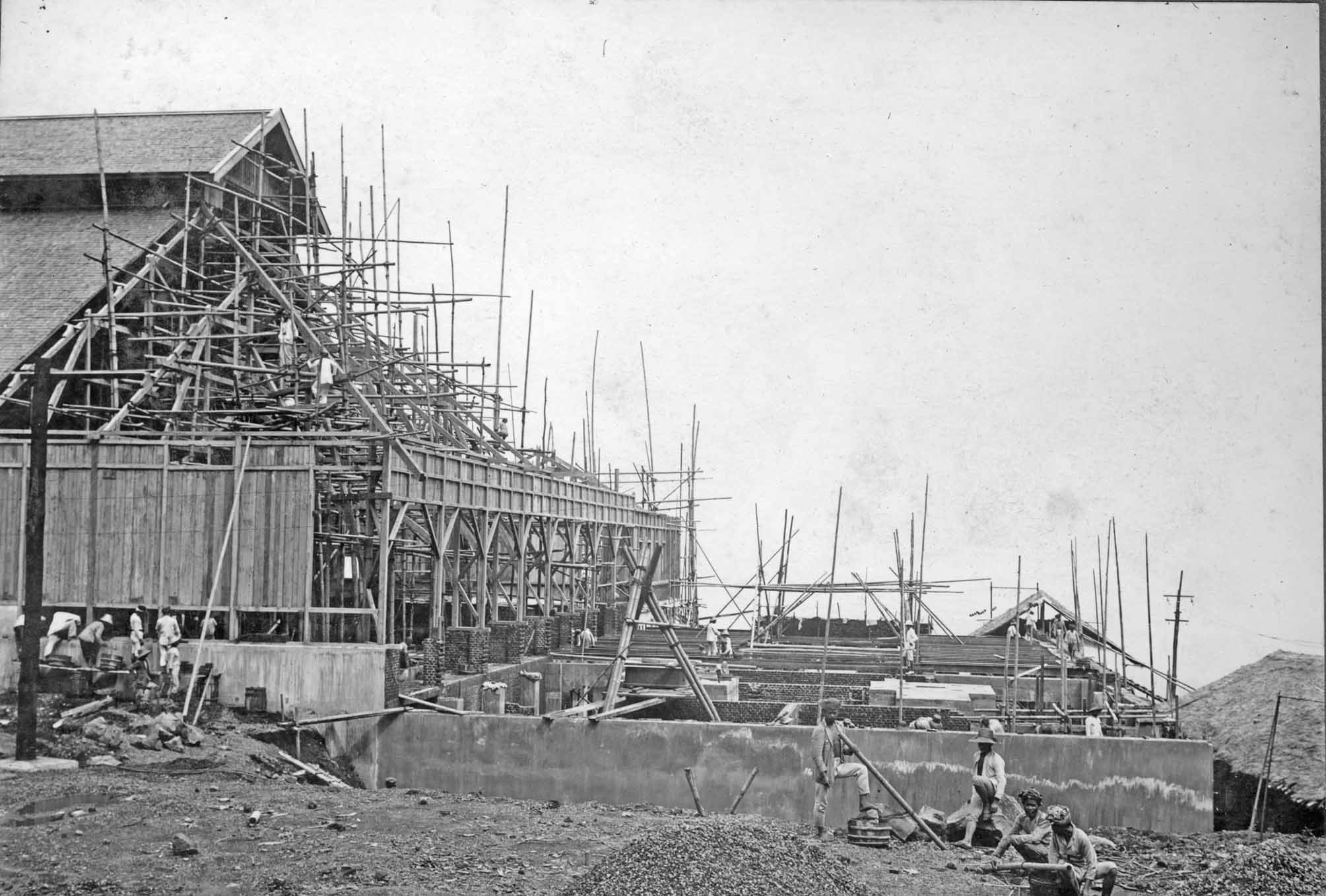 Laying the fundaments for the the extension hall for the Telefunken transmitter. Viewing in the distance the Bandung high Valley.